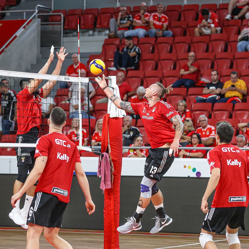 Ao invés, a primeira competição oficial começou bem para os homens comandados por Marcel Matz. Apesar do equilíbrio ter pautado o início da partida, as águias começaram a levantar voo a meio do primeiro set. Com um parcial de 9-1 dispararam no marcador (19-12) e mantiveram a toada atacante até final.