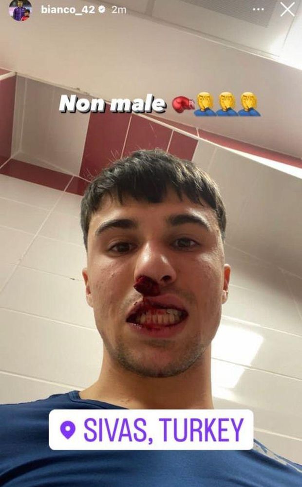 Momento absolutamente surreal nos instantes finais do Sivasspor-Fiorentina, da segunda mão dos oitavos de final da Liga Conferência. Após o quarto golo da equipa italiana (venceu por 4-1), um adepto da equipa turca invadiu o relvado e, durante os festejos dos jogadores da Fiorentina, agrediu Alessandro Bianco com um murro, deixando-o a sangrar abundantemente.