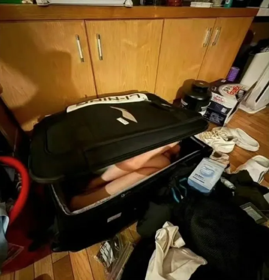 A situação foi descoberta porque a namorada de Xingliang terá publicado fotos no quarto de hotel na rede social Weibo, uma delas que a mostrava dentro da mala.