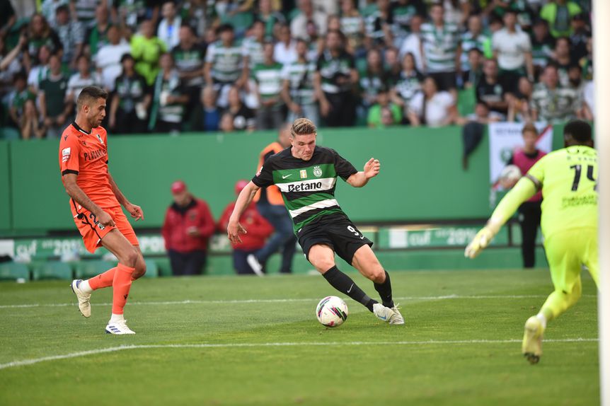 Verdadeiras oportunidades houve duas. Ou talvez apenas meias oportunidades. A primeira, num remate enquadrado de Trincão já bem perto do intervalo; a segunda, numa fuga de Gyokeres pela esquerda, bem ao seu jeito, mas sem o espaço e o enquadramento necessários para que lhe pudesse sair um remate verdadeiramente perigoso. Saiu-lhe apenas um fogacho.