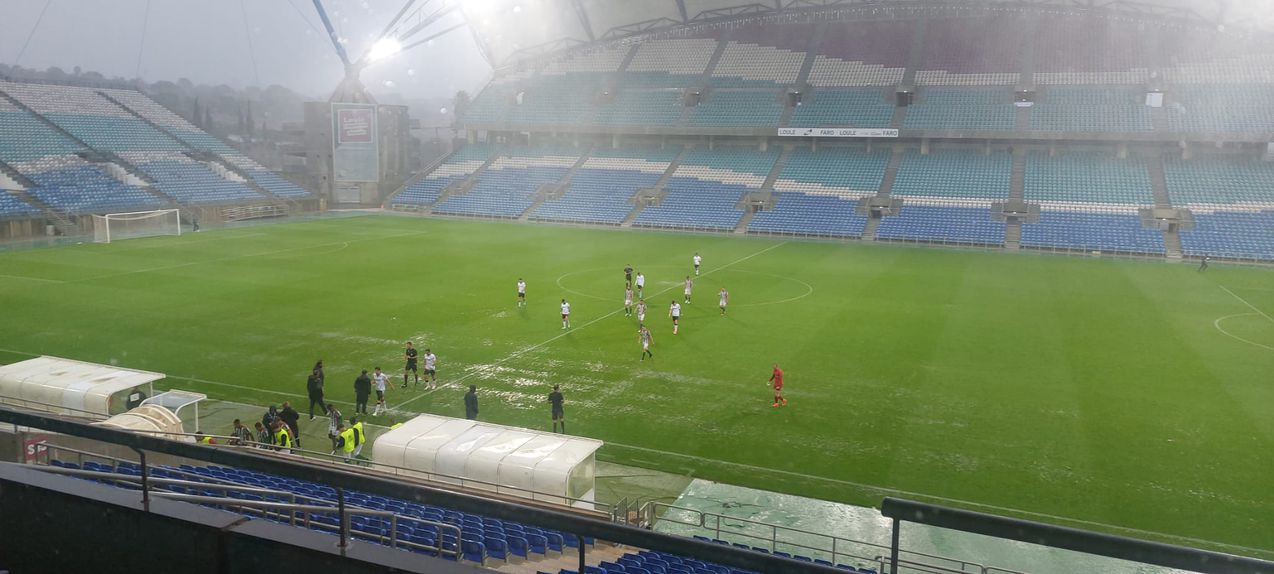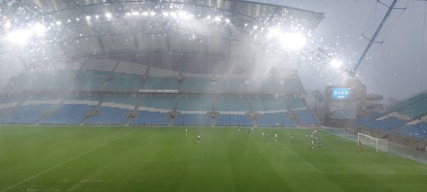 O árbitro Tiago Martins decidiu interromper, esta tarde, o Moncarapachense - V. Guimarães, para a Taça de Portugal, aos 30 minutos, devido ao mau tempo que se abateu no Estádio Algarve. O jogo foi retomado às 16h10, uma vez que a chuva deu algumas tréguas.