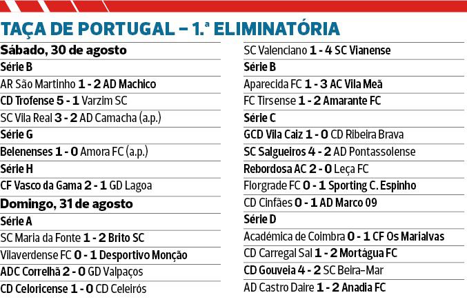 Primeira eliminatória iniciou-se este fim de semana e termina a 14 de setembro