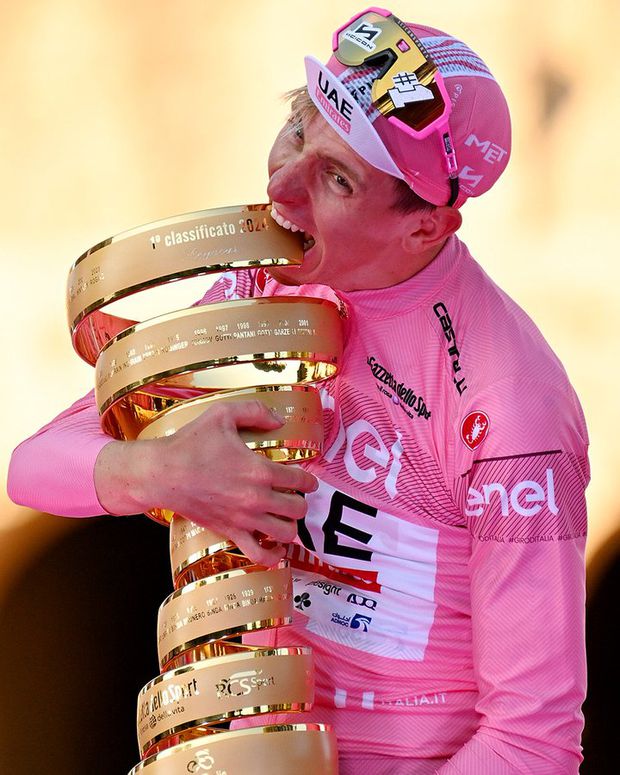 No Giro de 2024, Pogacar esteve numa categoria à parte. Só foi submetido (ou submeteu-se) a competitividade máxima em três etapas. Para vencer o primeiro contrarrelógio em Perugia, empenhando-se a fundo na subida para a meta para recuperar o atraso com que chegou a esse setor final e ainda vencer. Depois, na etapa rainha, com chegada em alto a Livigno, onde atacou a 14 quilómetros da chegada para conseguir alcançar o fugitivo Nairo Quintana, igualmente a tempo de triunfar. E finalmente, no segundo contrarrelógio, em que, todavia, acabou por der superado pelo especialista Filippo Ganna. Nas outras quatro etapas que conquistou, Pogacar fê-lo sem necessidade aparente de pedalar… a fundo.