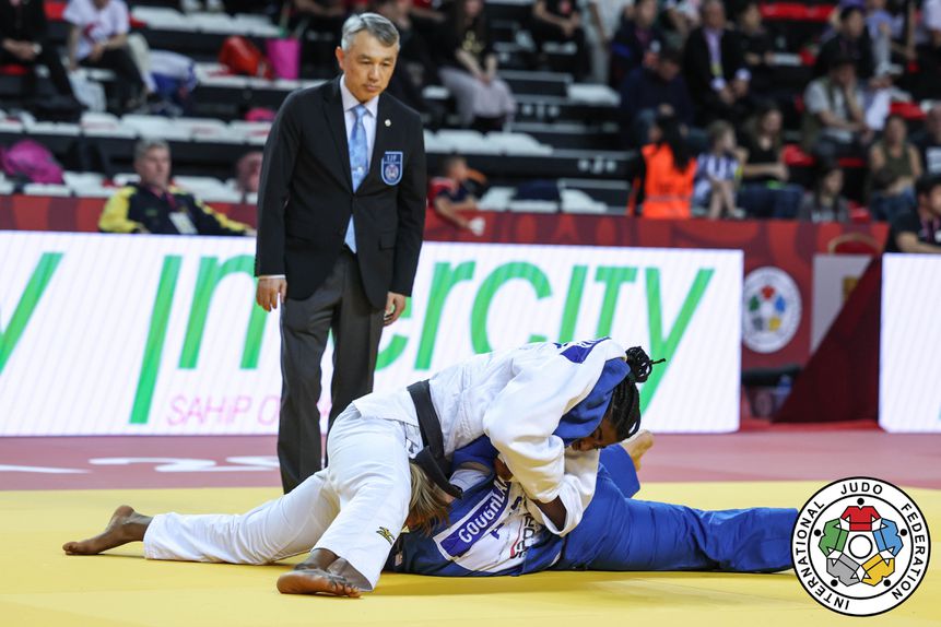 Seguiu-se a bósnia Aleksandra Samardzic (32.ª), contra quem teve de sair do tapete por estar a sangrar logo no peimeiro minutos. Nada a perturbou. Mesmo tendo que ir ao ponto de ouro, foi aos 49s do prolongamento que conseguiu o wazari que a colocou nos quartos de final face à neerlandesa Kim Polling (22.ª). Outra judoca com melhor ranking e bem mais experiente (33 anos). Imobilizou-a a 1.06m do termo do combate. Curiosamente a mesma forma que serviu para chegar à final derrotando a australiana Aoife Coughlan (10.ª) e estar, ainda com idade de júnior, a discutir o ouro no grand slam pela primeira vez.