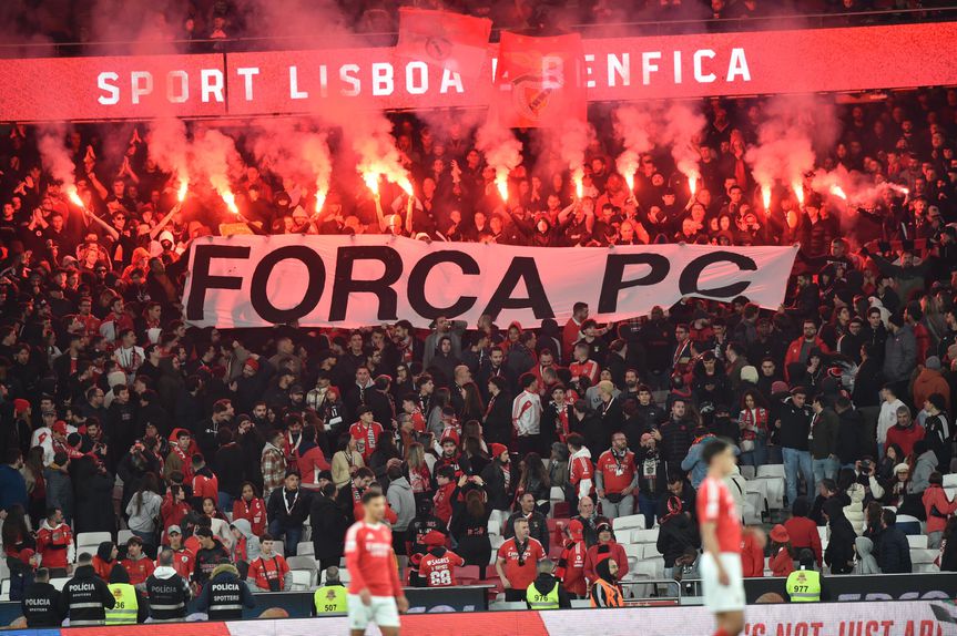 A mensagem exibida - «Força PC» - era dirigida ao irmão de um dos elementos históricos da claque encarnada, que está internado devido a problemas de saúde.