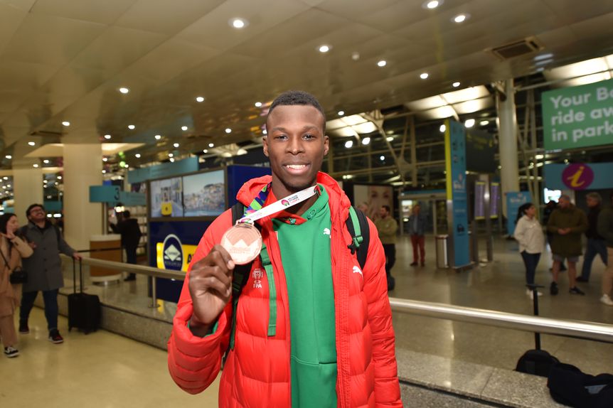 As pernas inquietas e o sorriso meio envergonhado em frente às câmaras que o esperavam no aeroporto Humberto Delgado denunciavam o pouco à-vontade e pareciam dar continuidade ao sonho que Tiago Pereira está a viver desde que, no sábado, voou 17,08 metros em Glasgow para agarrar a medalha de bronze no triplo salto dos Mundiais de pista curta. A sua primeira medalha internacional em grandes competições séniores.