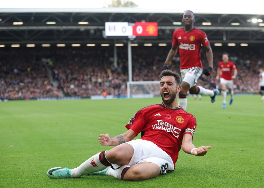 Bruno Fernandes a festejar o golo da vitória frente ao Fulham IMAGO