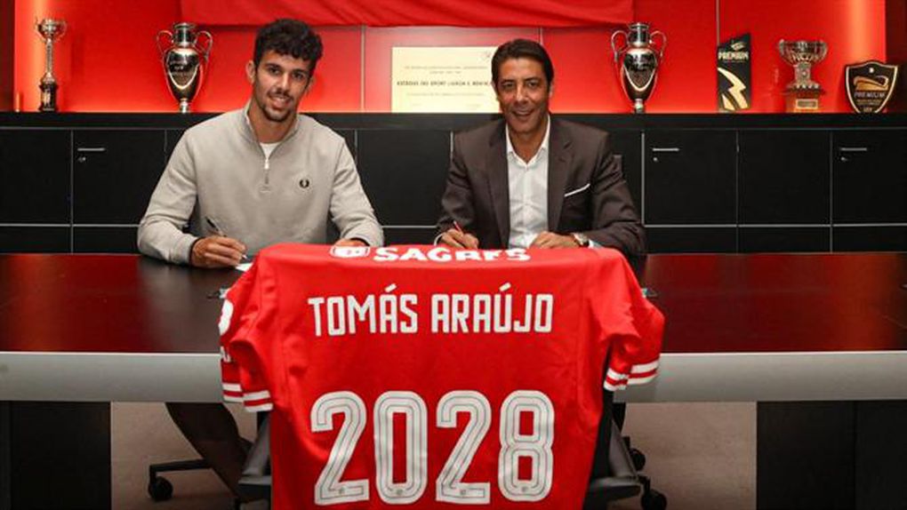 O Benfica anunciou, esta segunda-feira, a renovação de contrato com Tomás Araújo até 2028 e A BOLA sabe que a cláusula de rescisão foi fixada nos €100 milhões, o que demonstra a confiança que a SAD encarnada deposita no jovem central.