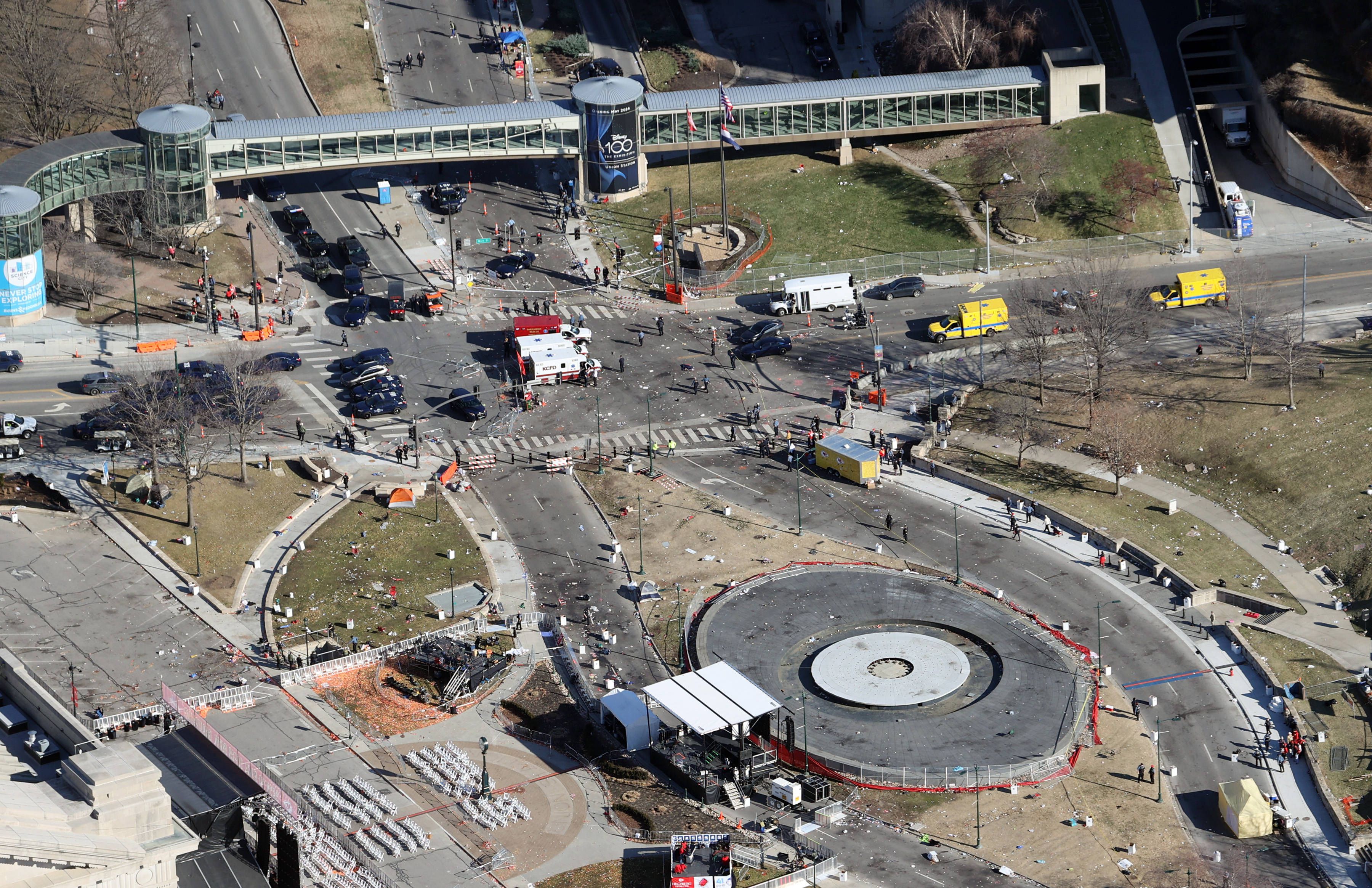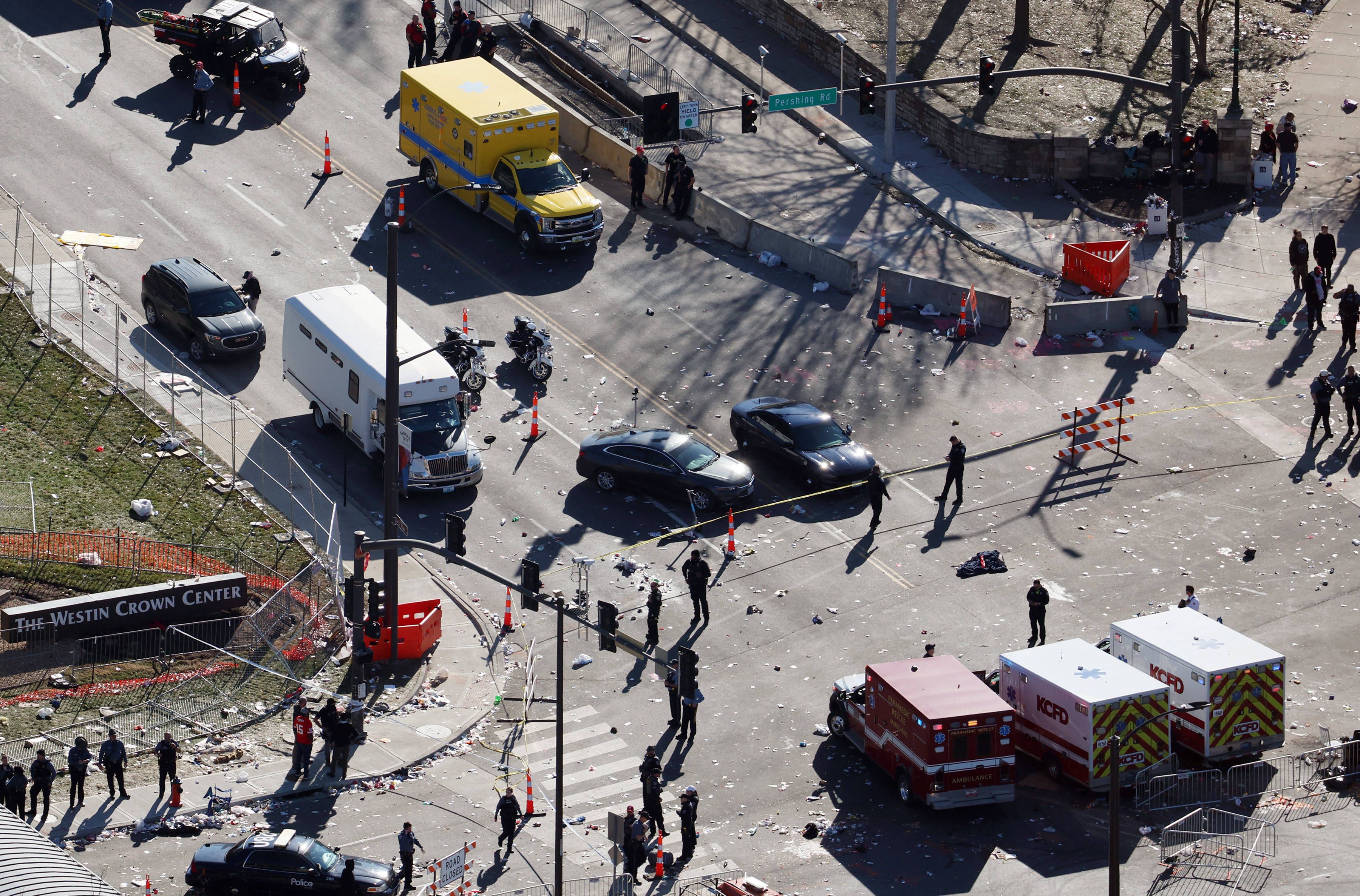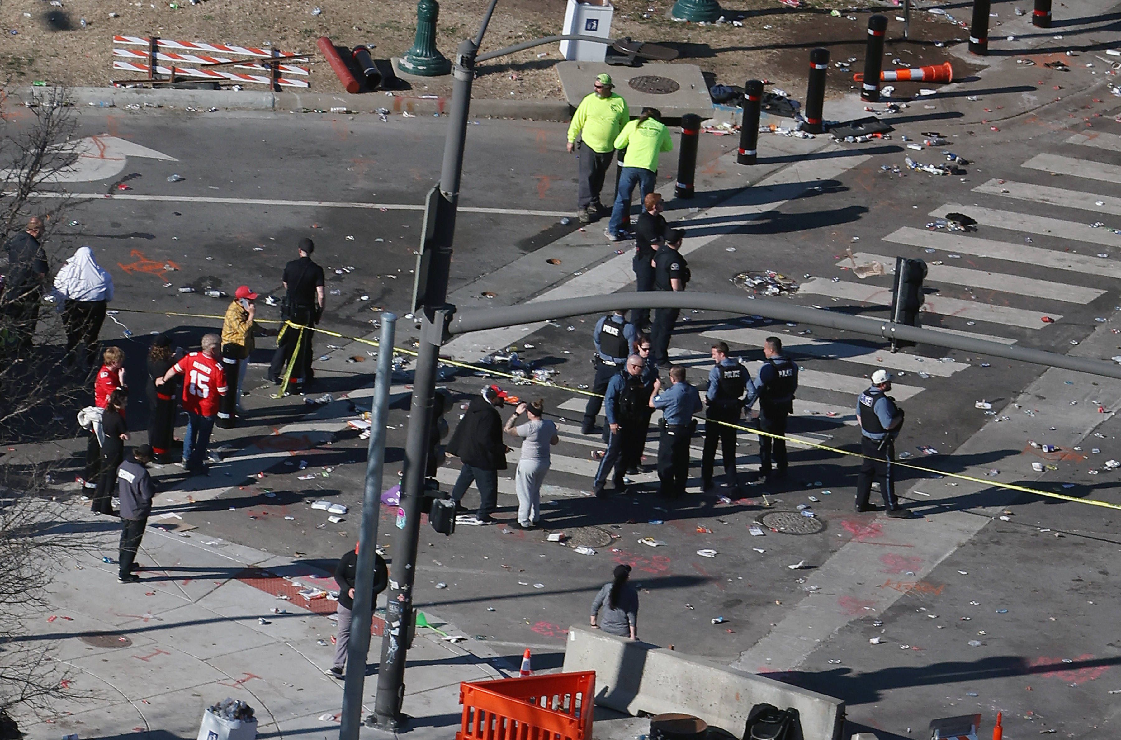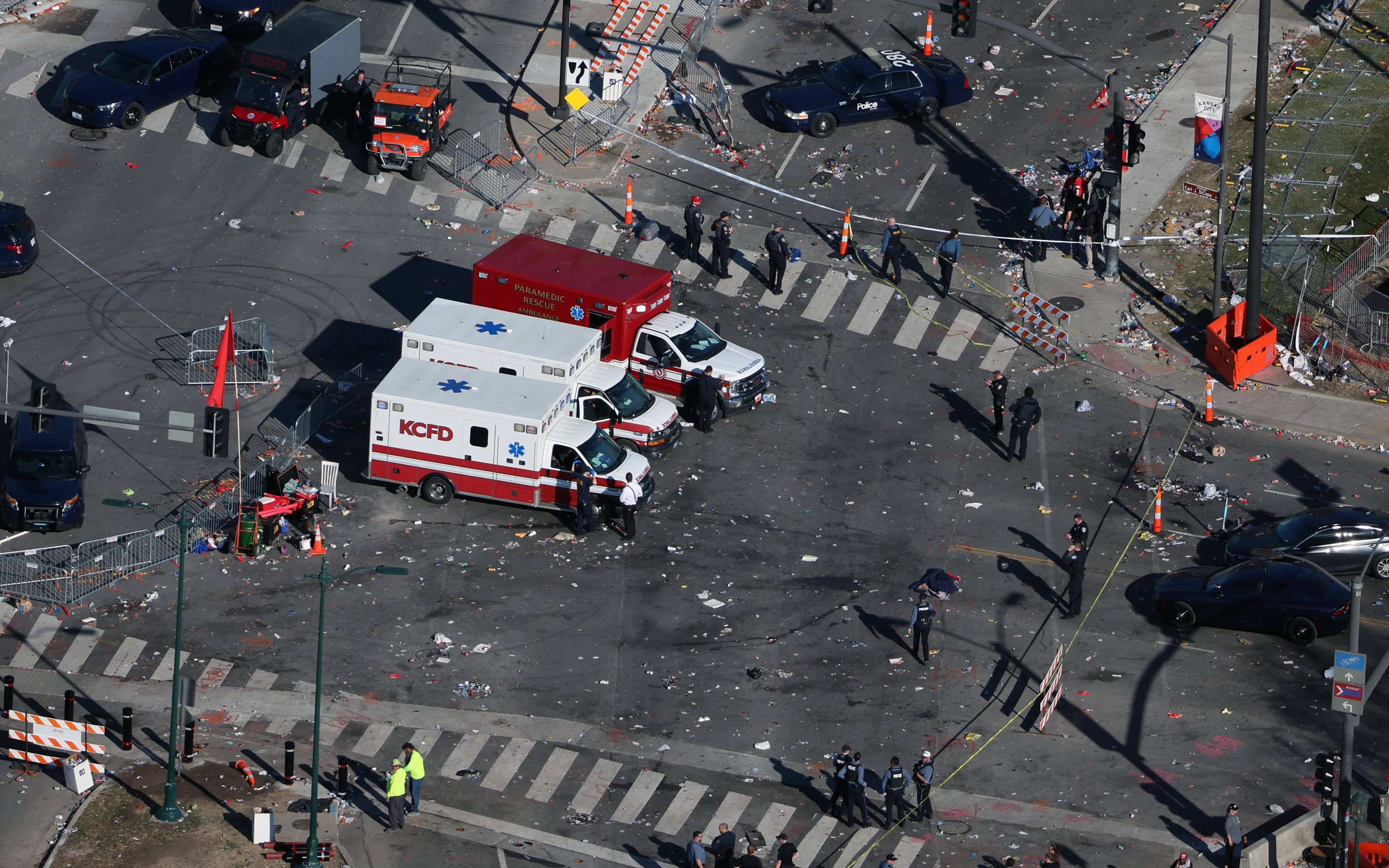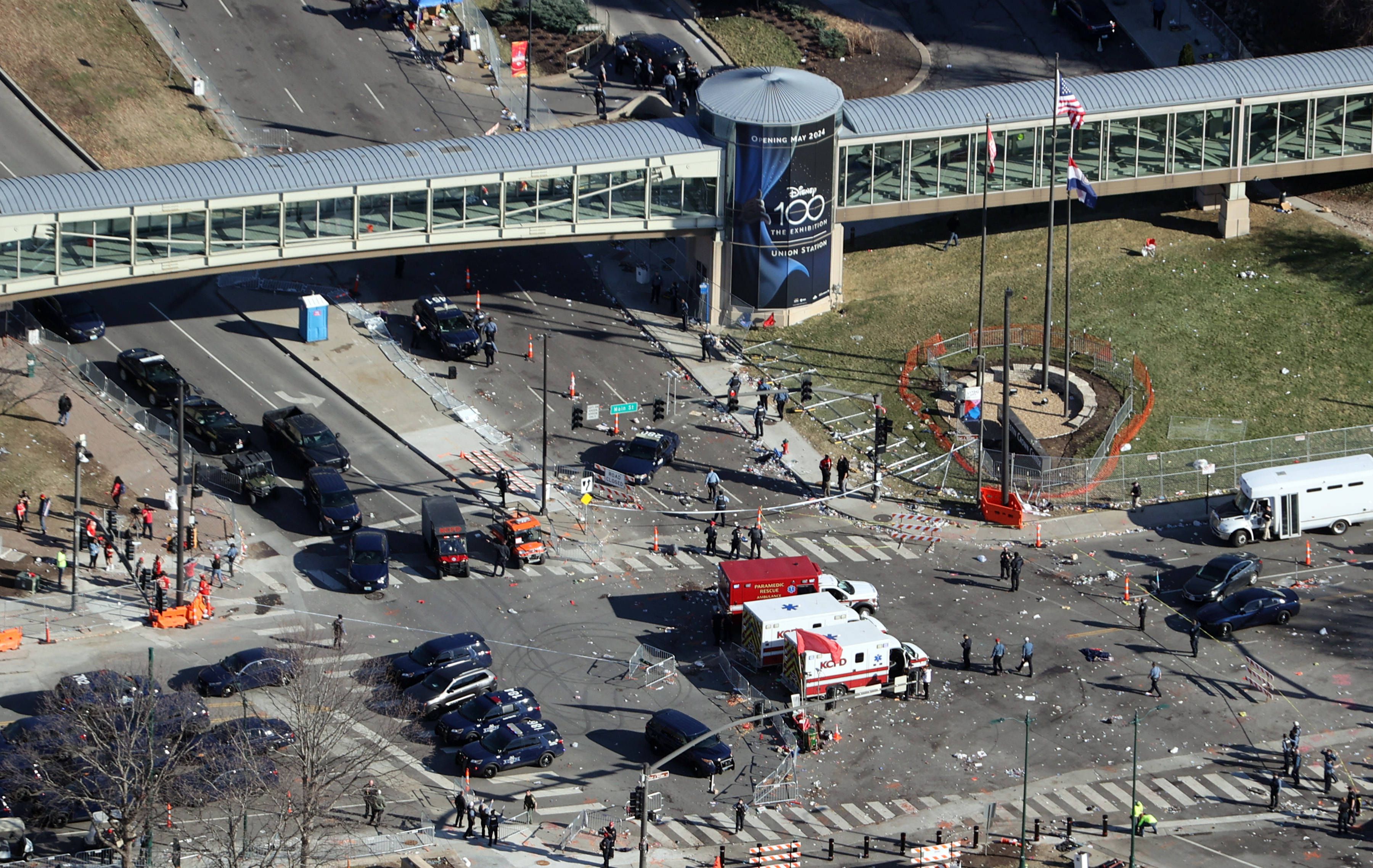 O Departamento Policial de Kansas City revelou que foram disparados três tiros juntos de Union Station, onde se encontrava um enorme aglomerado de fãs dos Chiefs e que «várias pessoas foram atingidas».