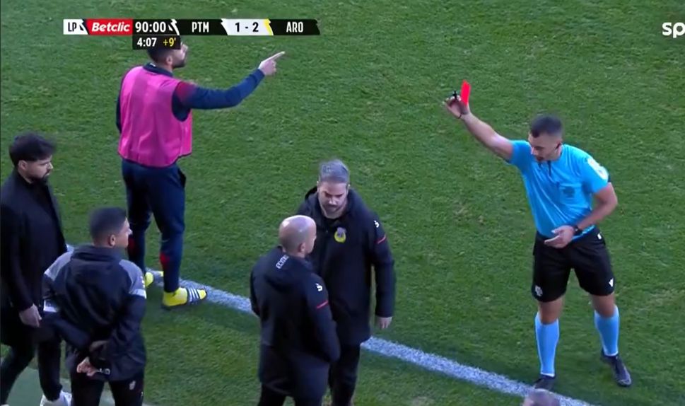 Daniel Sousa, técnico dos arouquenses, viu o vermelho, aos 90+5', no jogo em Portimão