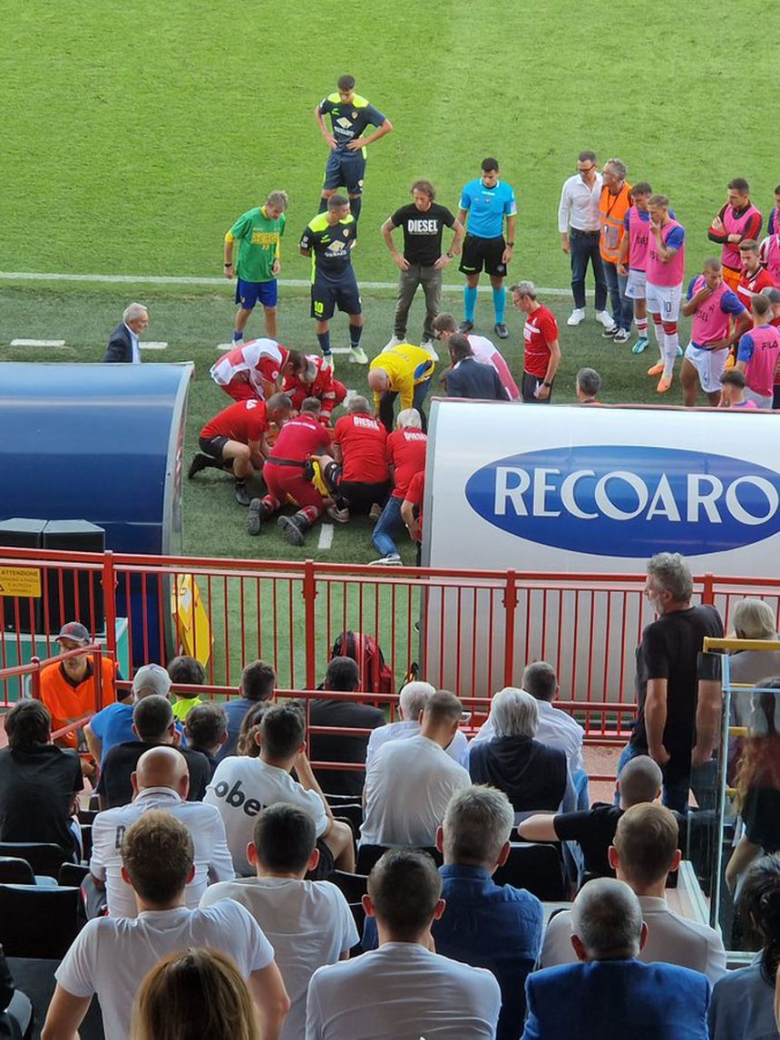 O momento ocorreu quando o técnico de 40 anos discutia com o juiz da partida. A certa altura, perdeu o equilíbrio e caiu para o lado. A equipa médica da sua equipa reagiu de imediato e, graças a um desfibrilhador, conseguiu recuperar Matteo Abatte e levá-lo para o hospital.