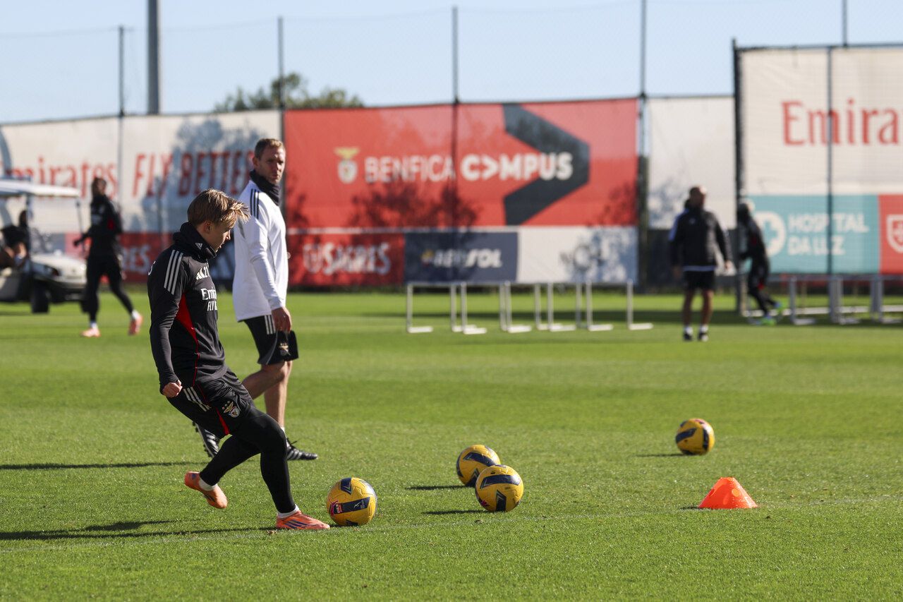 Em sentido inverso, António Silva integra este treino, ainda que de forma condicionada, trabalhando de forma individualizada. O defesa foi ausência de última hora frente ao Estoril e exames médicos revelaram que o jogador de 22 anos tem um edema de contusão muscular na coxa direita. Aursnes, que também tem lidado com problemas físicos, integra o treino com os colegas de equipas