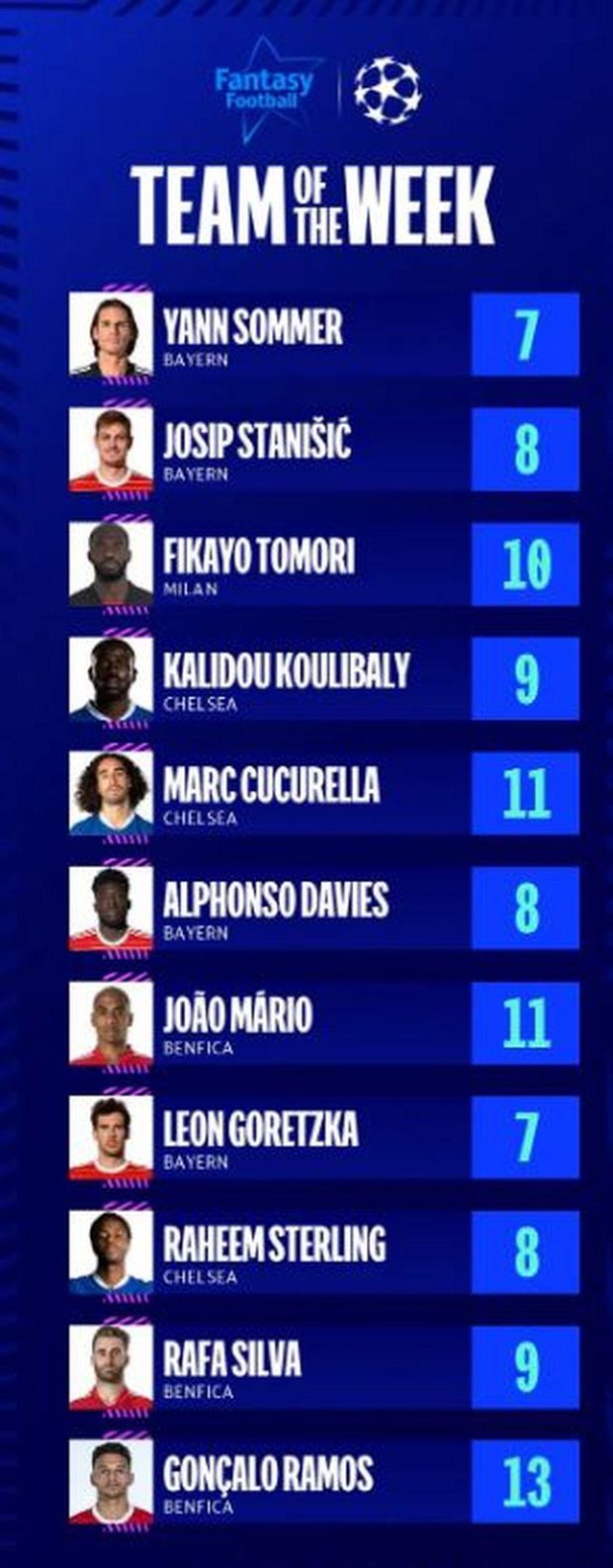 João Mário, Rafa e Gonçalo Ramos são os três jogadores do Benfica que integram a equipa da semana Fantasy Football da Liga dos Campeões, escolhida pelos adeptos a partir do site da UEFA.