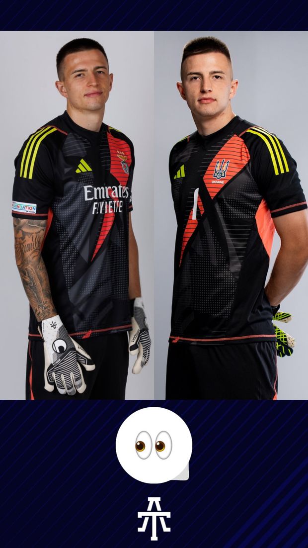O guarda-redes brincou com as semelhanças dos equipamentos de Benfica e Ucrânia. E, na verdade, o desenho é igual e praticamente só muda o emblema.