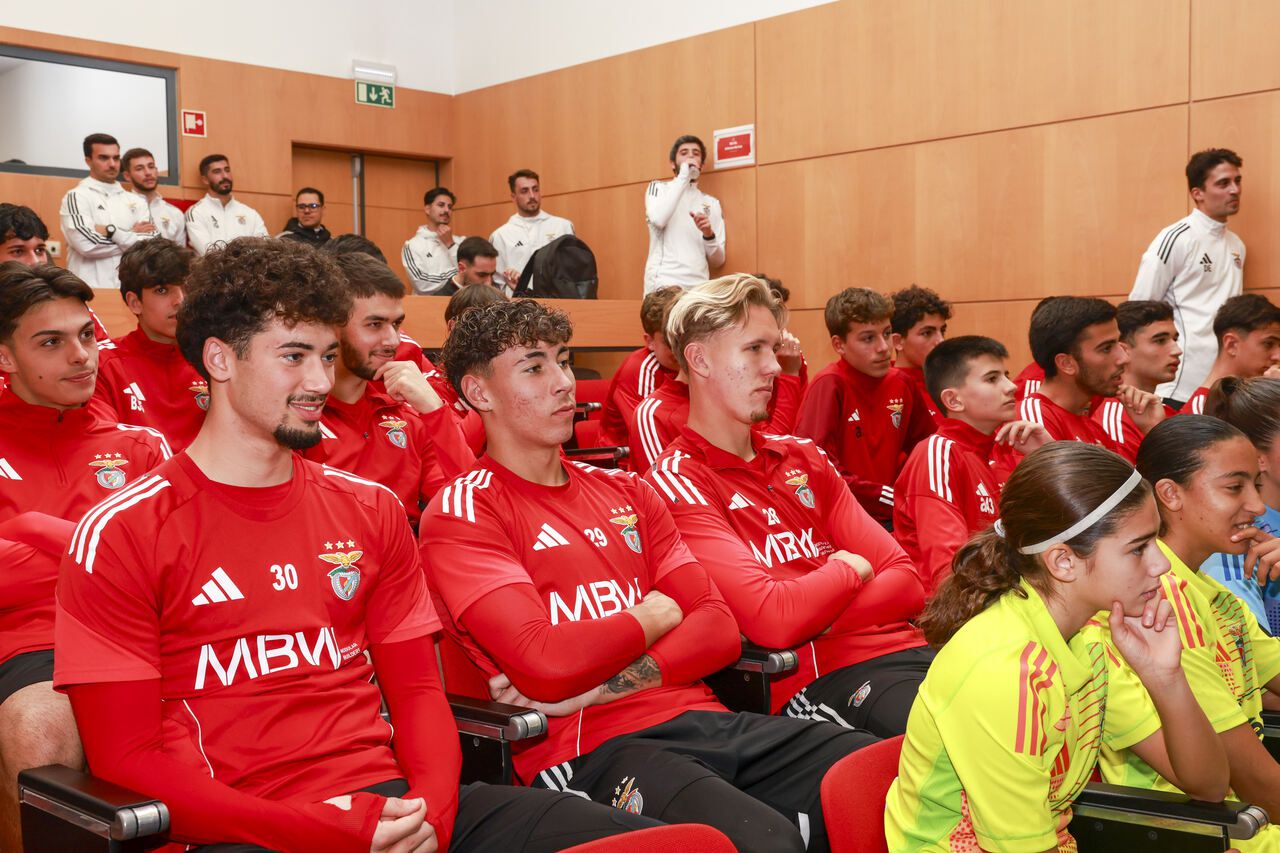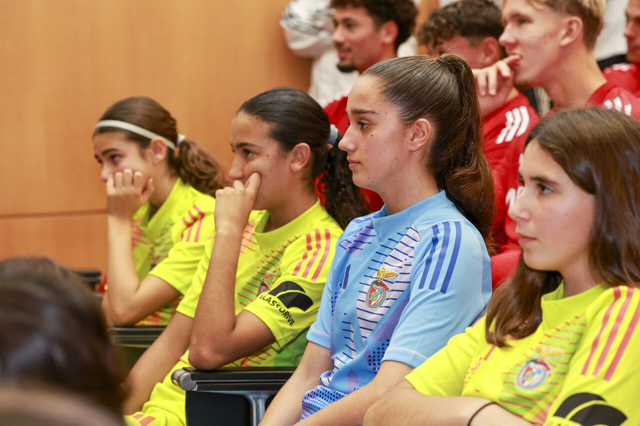 No palco do auditório do Benfica Campus do Seixal estiveram os guarda-redes Trubin, Samuel Soares, Diogo Ferreira, Lena Pauels, Rute Costa e Thaís Lima, atletas que partilharam experiências e deram conselhos aos mais novos. No final da sessão, os atletas passaram ao trabalho no relvado, de forma diferente.