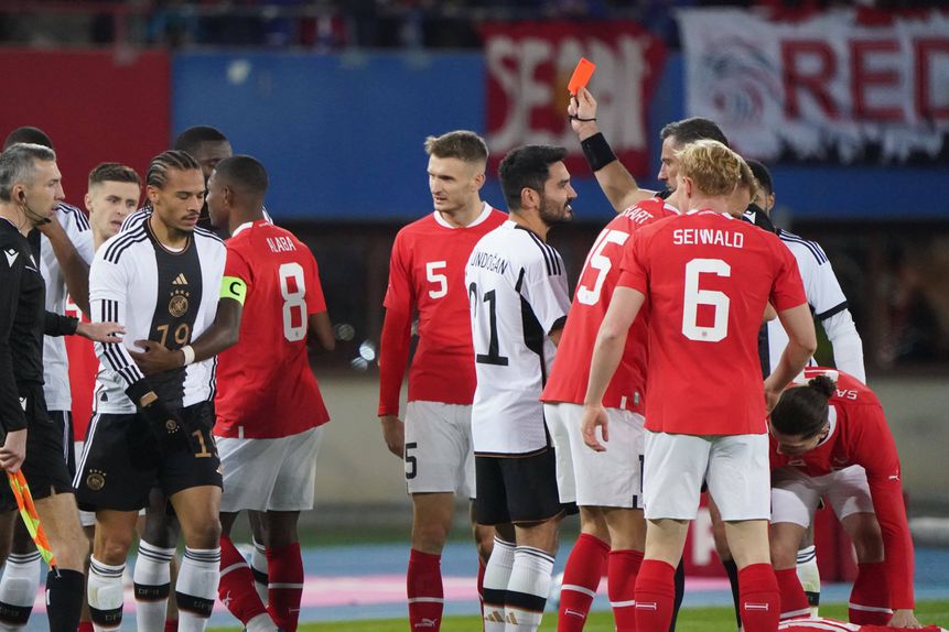 Leroy Sané expulso frente à Áustria (IMAGO / Chai v.d. Laage) - Foto: IMAGO