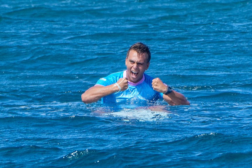 Já do lado dos homens, o medalha de ouro olímpico em Paris-2024, Kauli Vaast, levou a melhor no duelo contra o George Pittar, com 14,06 (7,83 e 6,23), face aos 11,64 (5,97 e 5,67) do rival, que também já integrou o circuito principal da Liga Mundial de Surf (WSL).