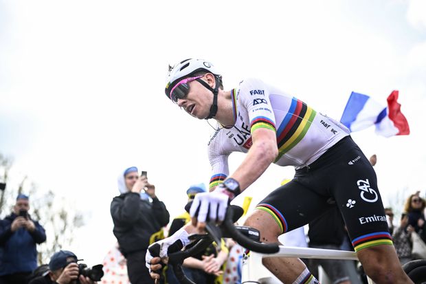 Porém, uma queda a cerca de 38 quilómetros da meta estragou o sonho e a estreia num percurso que Van der Poel conhece na perfeição. A experiência e talento do neerlandês no pavê faziam dele o principal obstáculo ao esloveno e confirmou-se, com Pogacar a levantar-se com cerca de 15 segundos para recuperar.