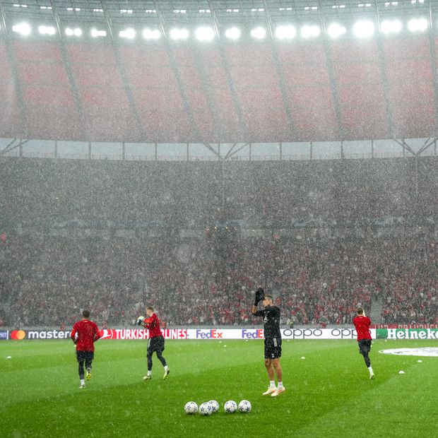 E atenção, está a chover imenso em Berlim, vamos ver como as equipas se adaptam. Ora veja a foto: