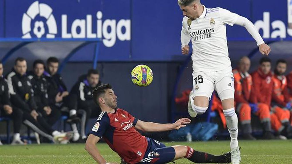 O Real Madrid encurtou na noite deste sábado a distância para o Barcelona no topo da classificação da Liga de Espanha para cinco pontos (à condição), ao ir ao Estádio El Sadar, em Pamplona, vencer o Osasuna por 2-0, em encontro da 22.ª jornada da La Liga, graças a golos do internacional uruguaio Federico Valverde, aos 78’, e de Marco Asensio, este já no tempo de compensação (90+2).