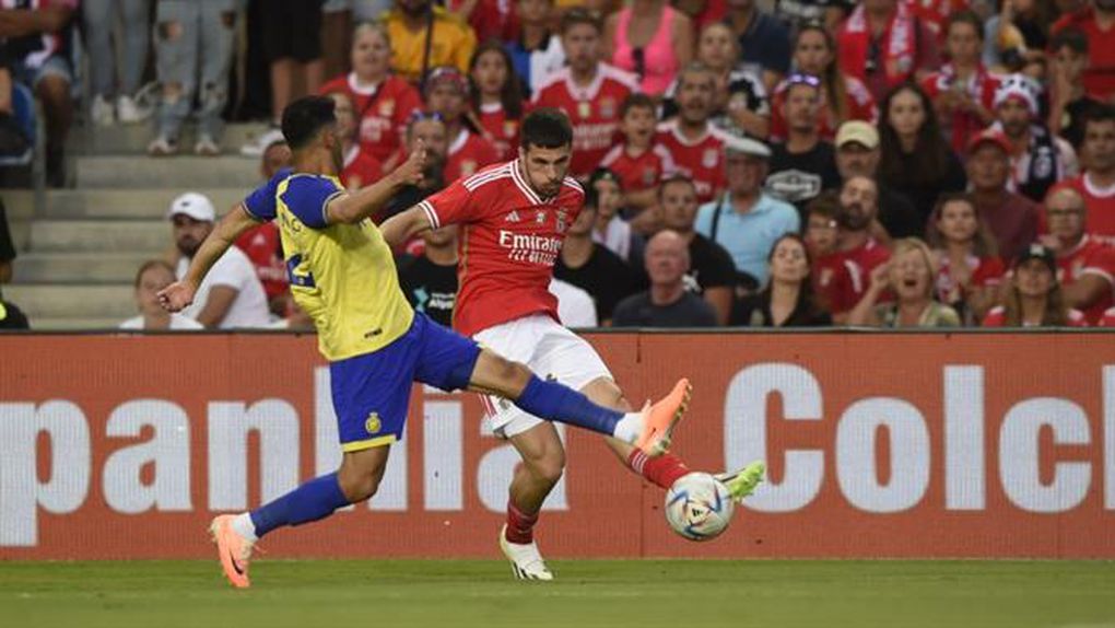 O lateral-esquerdo checo David Jurásek, reforço do Benfica para a nova época, mostrou-se sorridente e muito satisfeito depois do gordo triunfo sobre o Al Nassr, de Cristiano Ronaldo e Luís Castro, por 4-1, no Estádio Municipal Faro/Loulé.