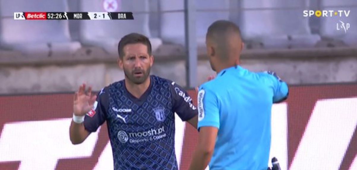 Depois de ter entrado para o início da segunda parte, rendendo André Horta ao intervalo, com o SC Braga em desvantagem (1-2) no marcador em Moreira de Cónegos, João Moutinho viu um cartão vermelho direto ao minuto 53. No entanto, após se consultar o VAR, a decisão foi revertida, com o cartão vermelho a passar a amarelo e a manter os guerreiros do Minho com onze unidades em campo diante do Moreirense, nesta partida de acerto de calendário da 3.ª jornada.