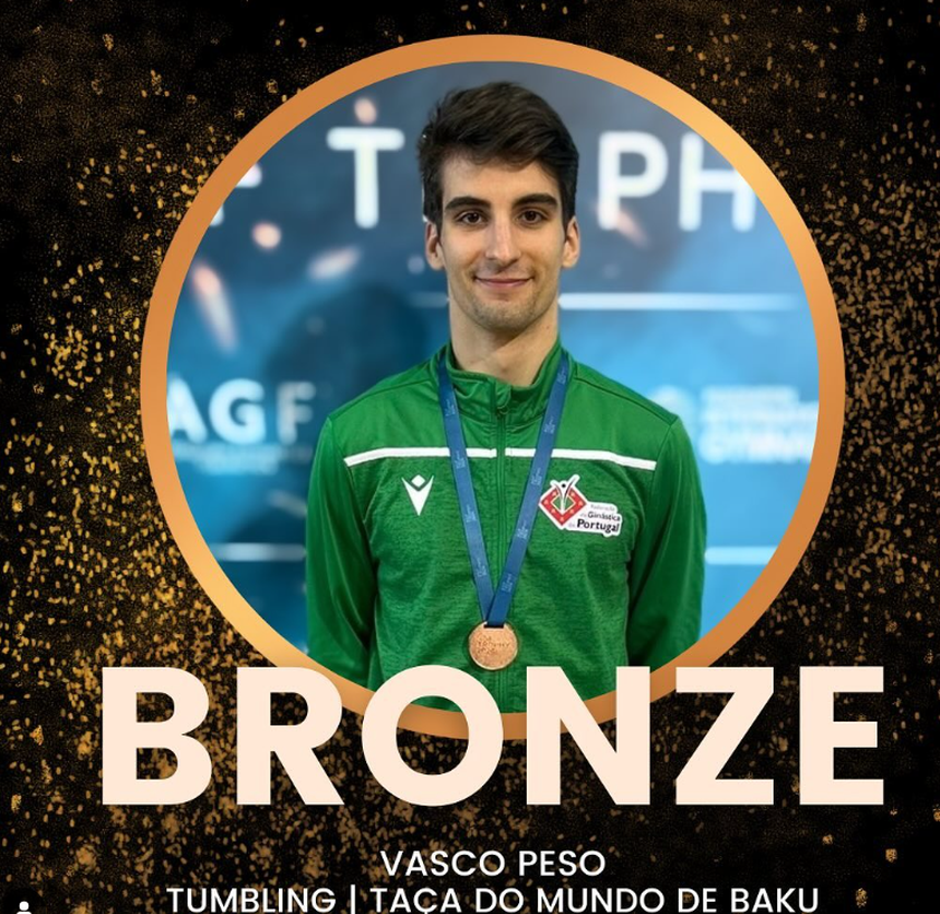 O ginasta português Vasco Peso arrebatou, neste domingo, a medalha de bronze na prova de tumbling da Taça do Mundo de Baku.