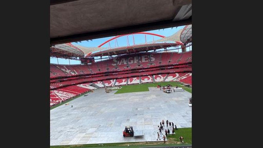 O relvado do Estádio da Luz foi já parcialmente coberto para dar lugar ao piso e ao palco para o concerto de Rammstein, que terá lugar na próxima segunda-feira.