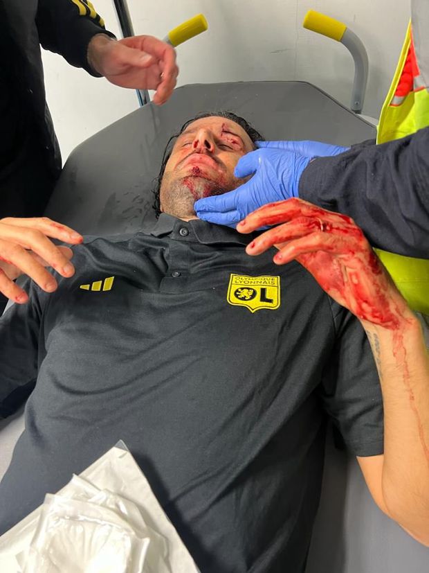 Treinador do Lyon foi um dos feridos na sequência do ataque dos adeptos do Marselha, situação que levou ao adiamento do jogo