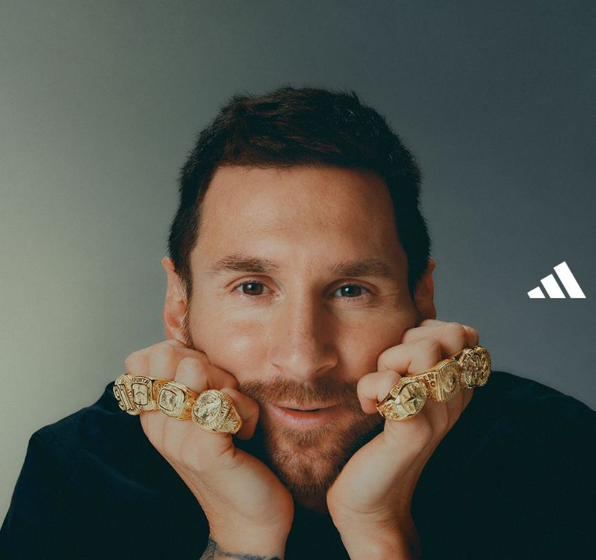Em parceria com o seu principal patrocinador, a Adidas, foram feitos oito anéis, cada um de 14 quilates de ouro, ao estilo da NBA, e dedicado a vários momentos do jogador, com o argentino a recriar a pose de Russell– as mãos a enquadrar a cara, mostrando todos os anéis. A foto foi tirada por Andrew Bernstein, o principal fotógrafo da NBA.