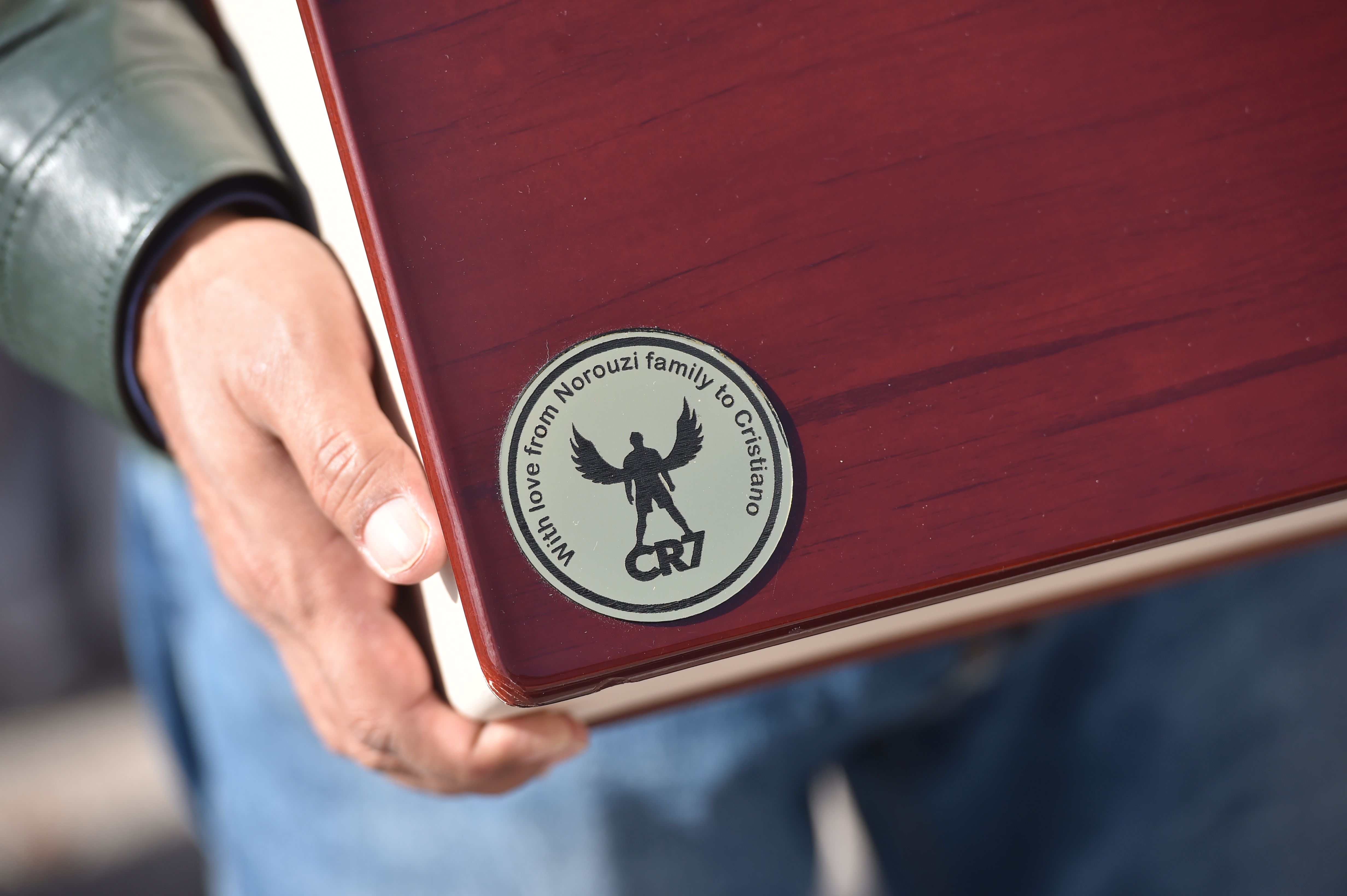 A caixa que Mohamed Norouzi levou do Irão à Bósnia para oferecer a Cristiano Ronaldo (ASF)