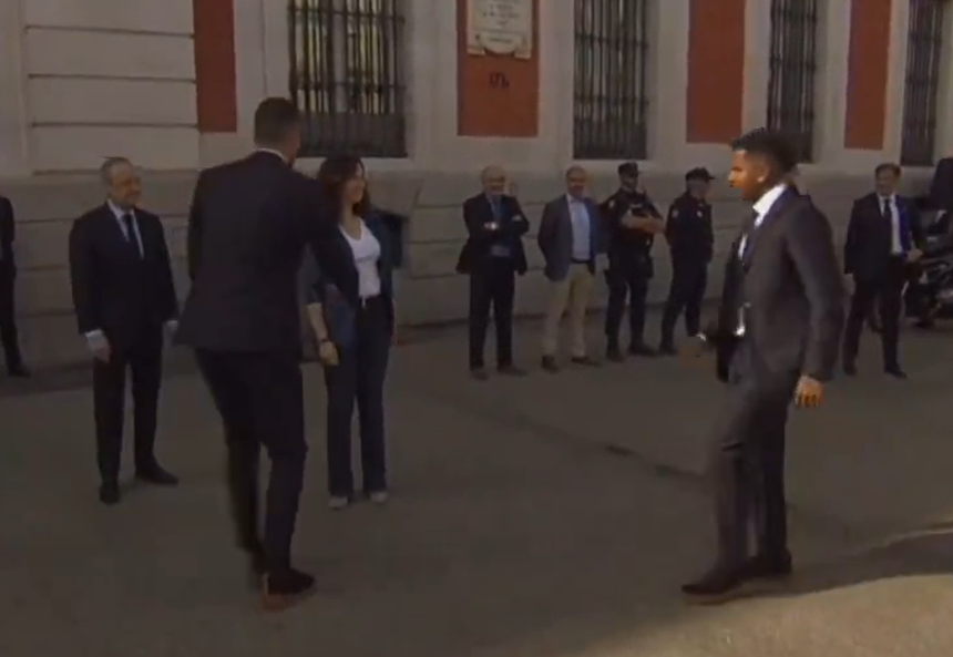 Depois de sair do complexo desportivo, a comitiva merengue foi recebida na sede da Comunidade de Madrid pela presidente Isabel Díaz Ayuso, que foi cumprimentada pelos jogadores, ainda que no caso do herói da meia-final da Champions esse cumprimento só tenha chegado após indicação de Florentino Pérez.