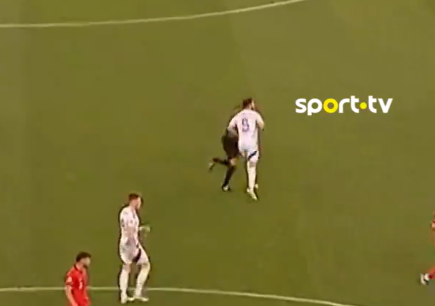 No início do segundo tempo e antes do golo de Bruno Fernandes, no duelo entre Portugal e a Escócia, no Estádio da Luz, o jogo foi brevemente interrompido para o árbitro recuperar de uma colisão com um jogador escocês, Lyndon Dykes.