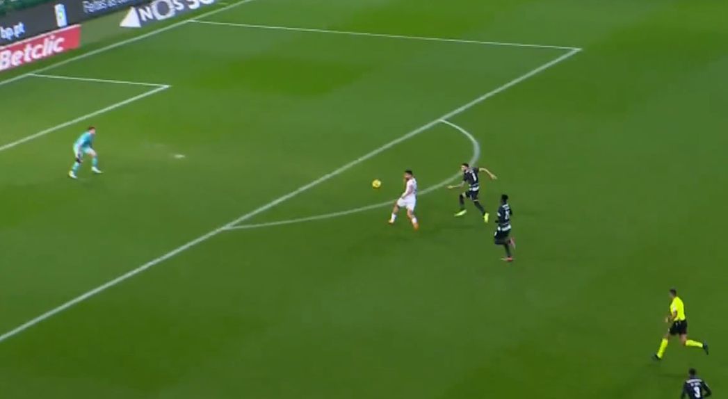 Numa bela movimentação, o avançado ganhou a frente a Debast, mas tocou com a mão na bola, e, por isso, o golo não contou, tendo sido substituído nem 10 minutos depois.