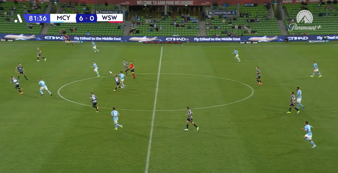 Terry Antonis marcou o sétimo golo do Melbourne City, com a bola no ar, do meio-campo