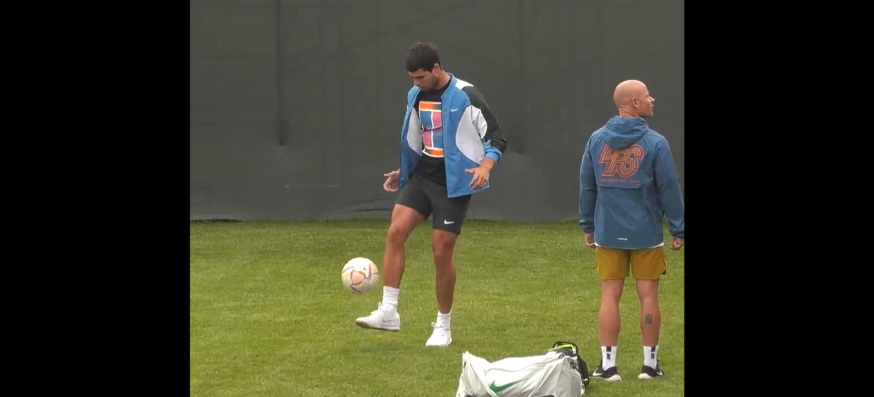 Carlos Alcaraz, número dois do ranking ATP, não tem jeito apenas para o ténis e provou-o, mostrando a qualidade que também tem nos pés.