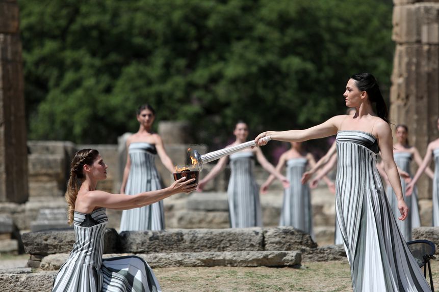 Numa cerimónia que teve mais de 1.000 pessoas a assistir, junto às ruínas do Templo de Hera, o remador helénico Stefanos Ntsoukos, campeão olímpico em Tóquio, foi o atleta escolhido para ser o primeiro a receber a chama.