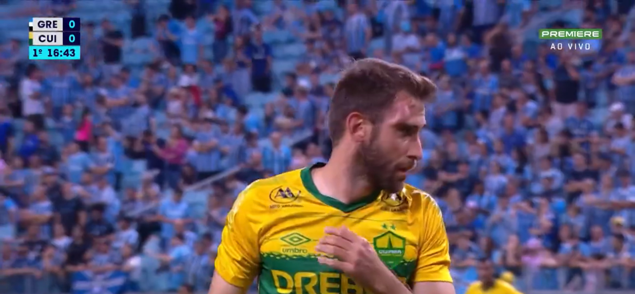 Houve um enorme choque de cabeças durante o encontro entre o Grêmio e o Cuiabá, para a terceira jornada do Brasileirão, ao minuto 16.