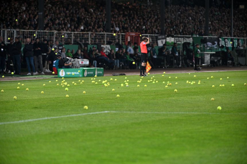 Aos 30 minutos de jogo, 185 bolas de ténis foram atiradas para dentro do campo do Preussenstadion, interrompendo a partida, quando o Bayern vencia por 1-0.