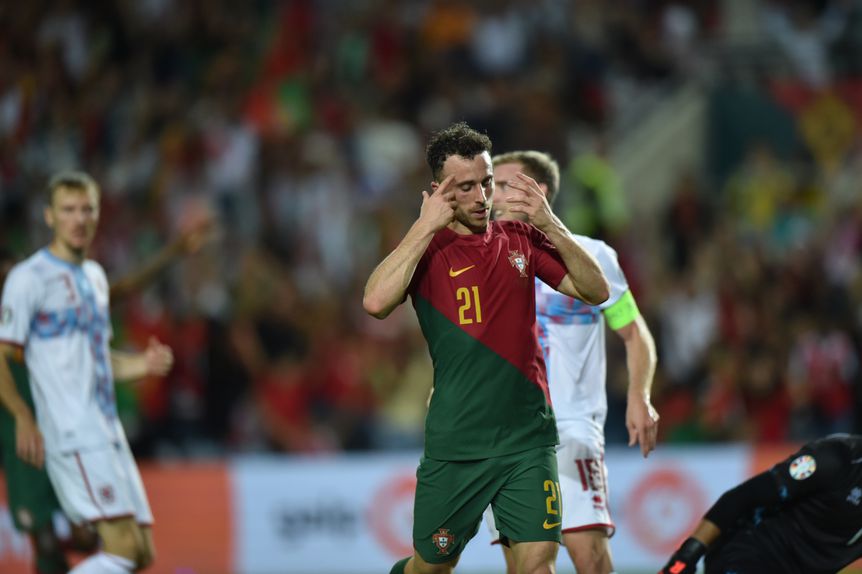 Diogo Jota bisou, aos 77’, e fez o sétimo golo de Portugal frente ao Luxemburgo.