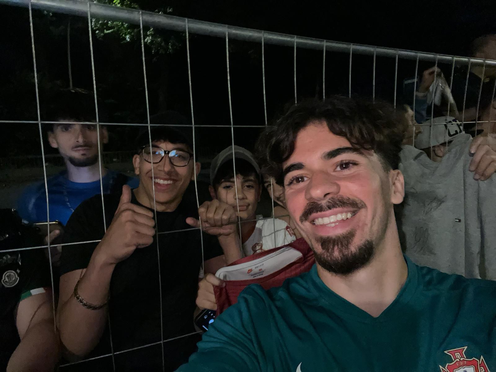 Na noite de domingo uma prenda: vários jogadores foram ver adeptos que esperam várias horas à porta do hotel Klosterpforte, em Marienfeld, para ver os internacionais lusos.