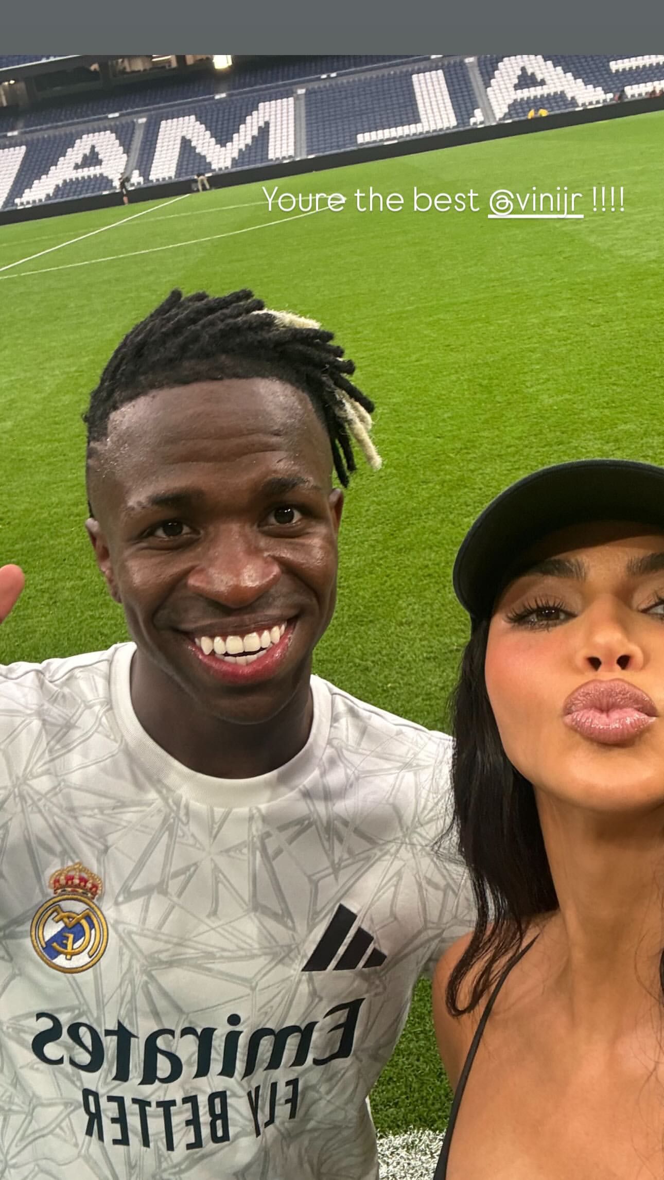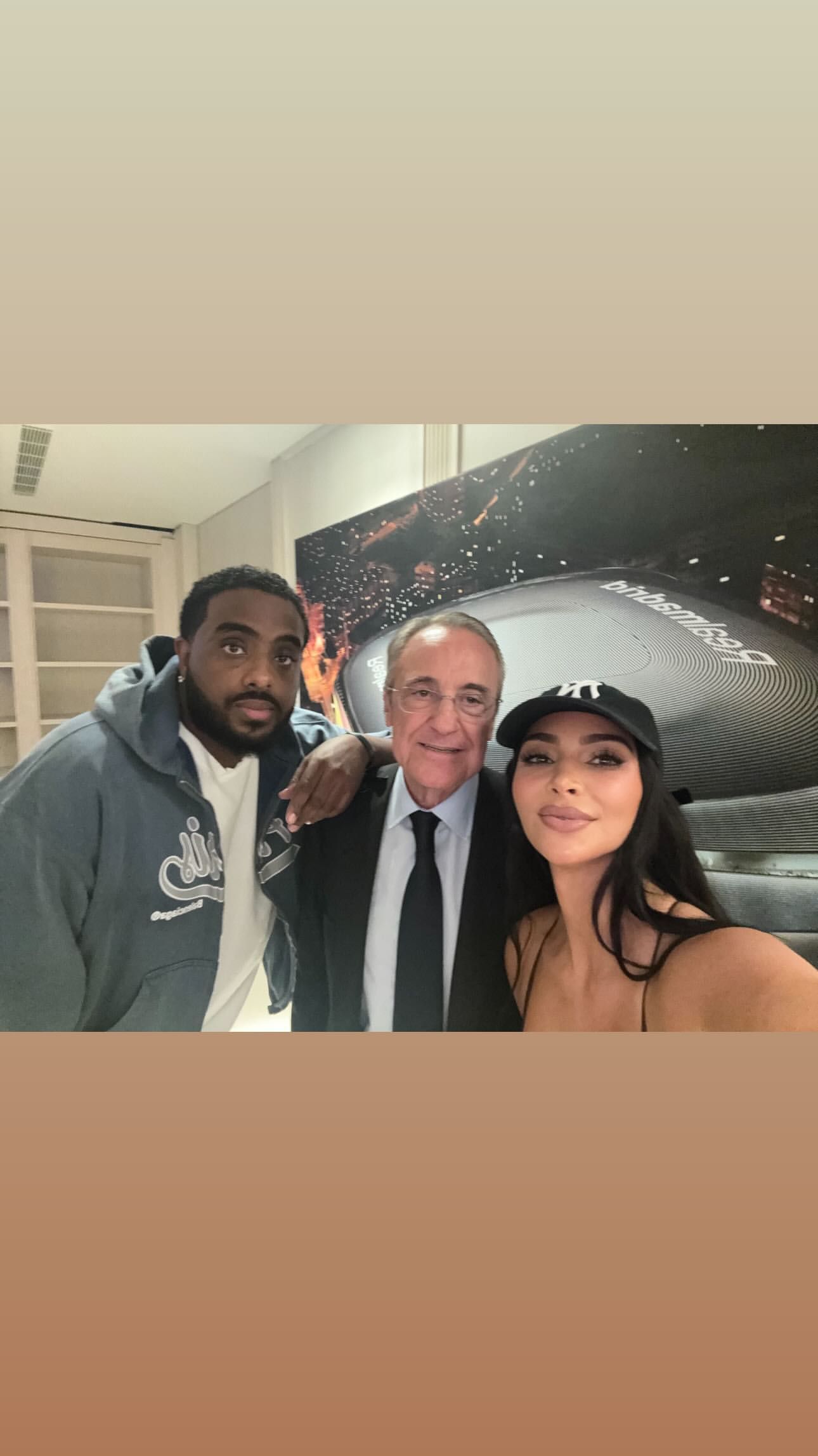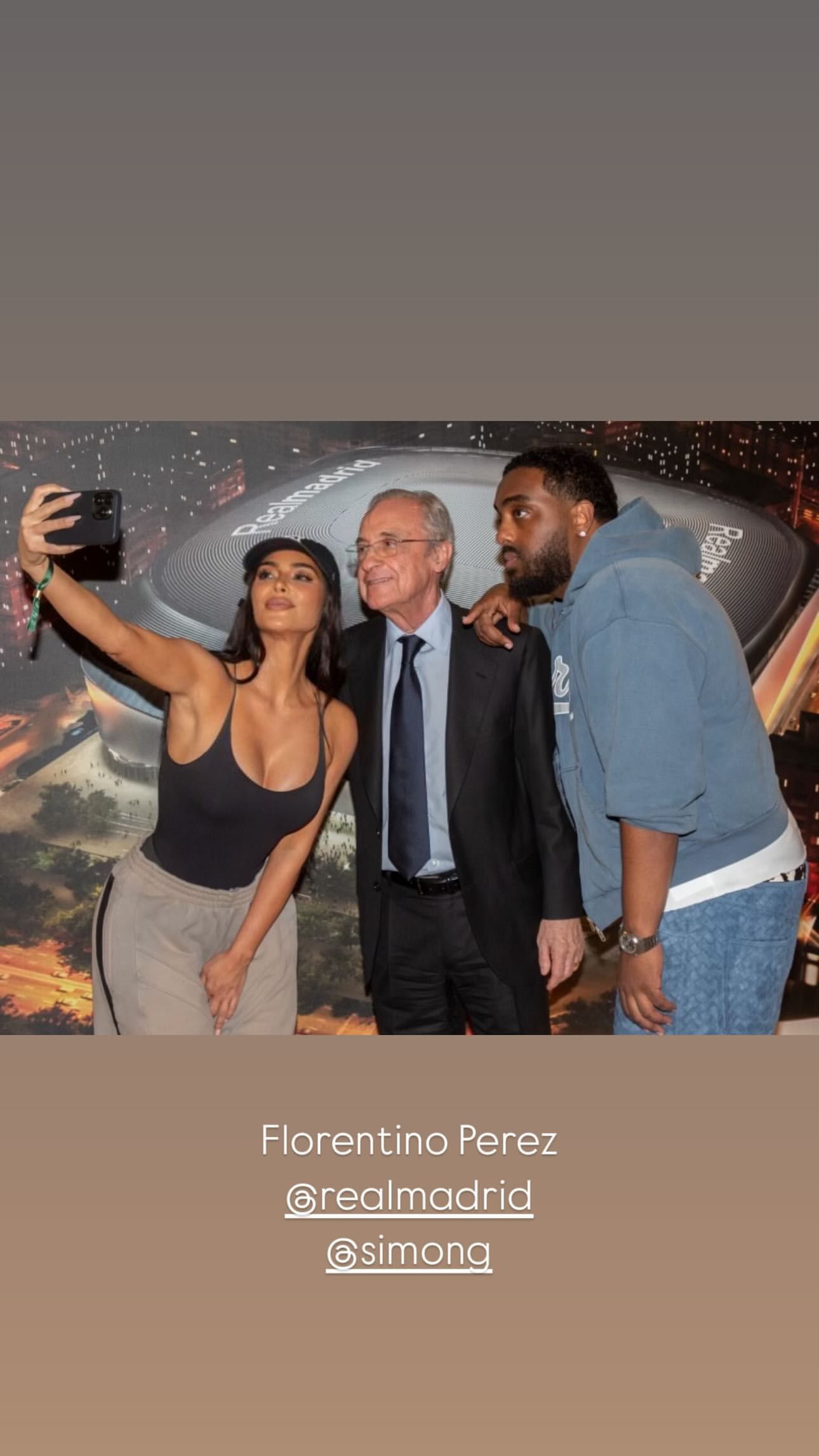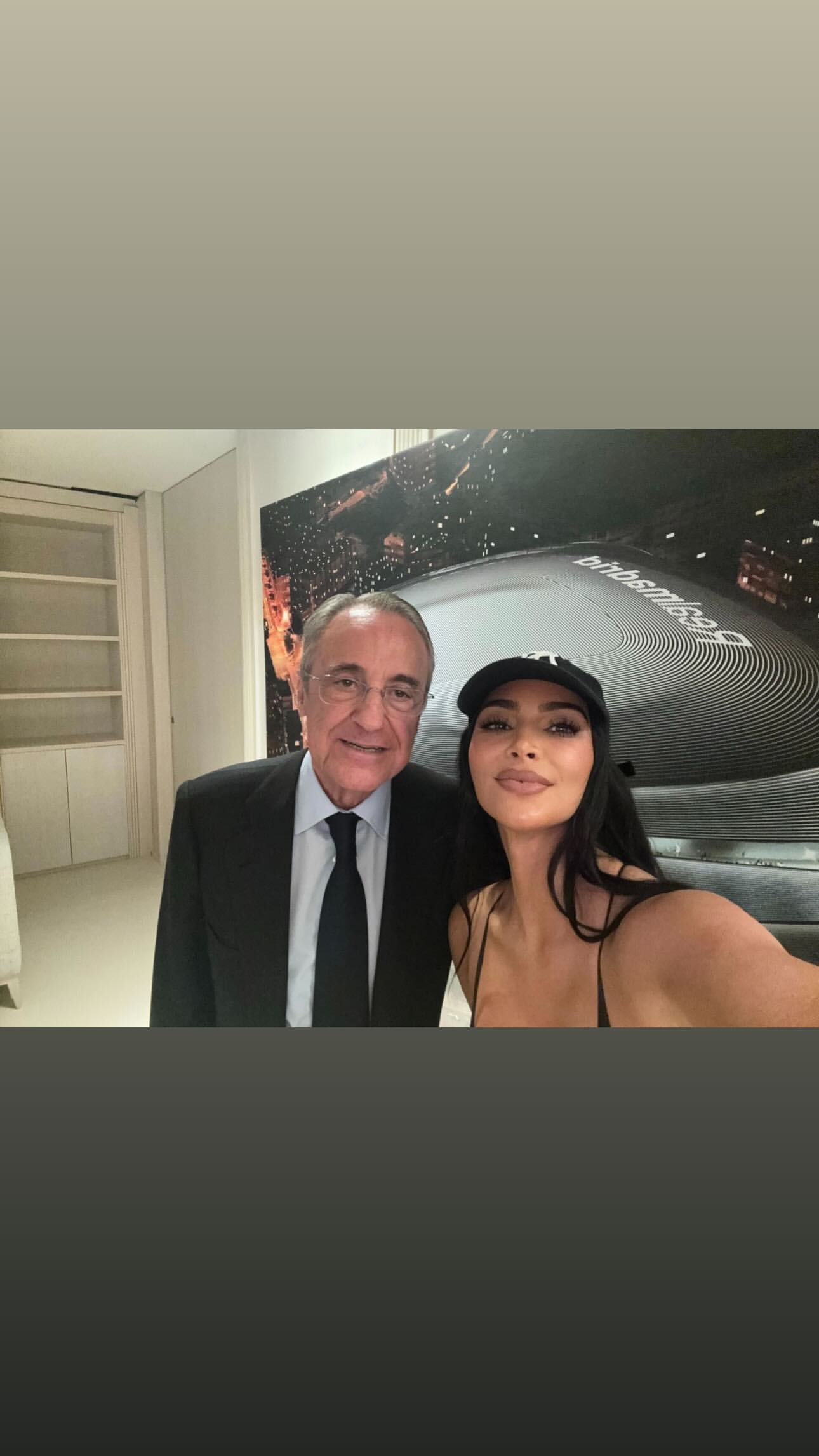 Vídeo e fotos: Kim Kardashian esteve no Bernabéu, Vinícius e até Florentino Pérez posaram