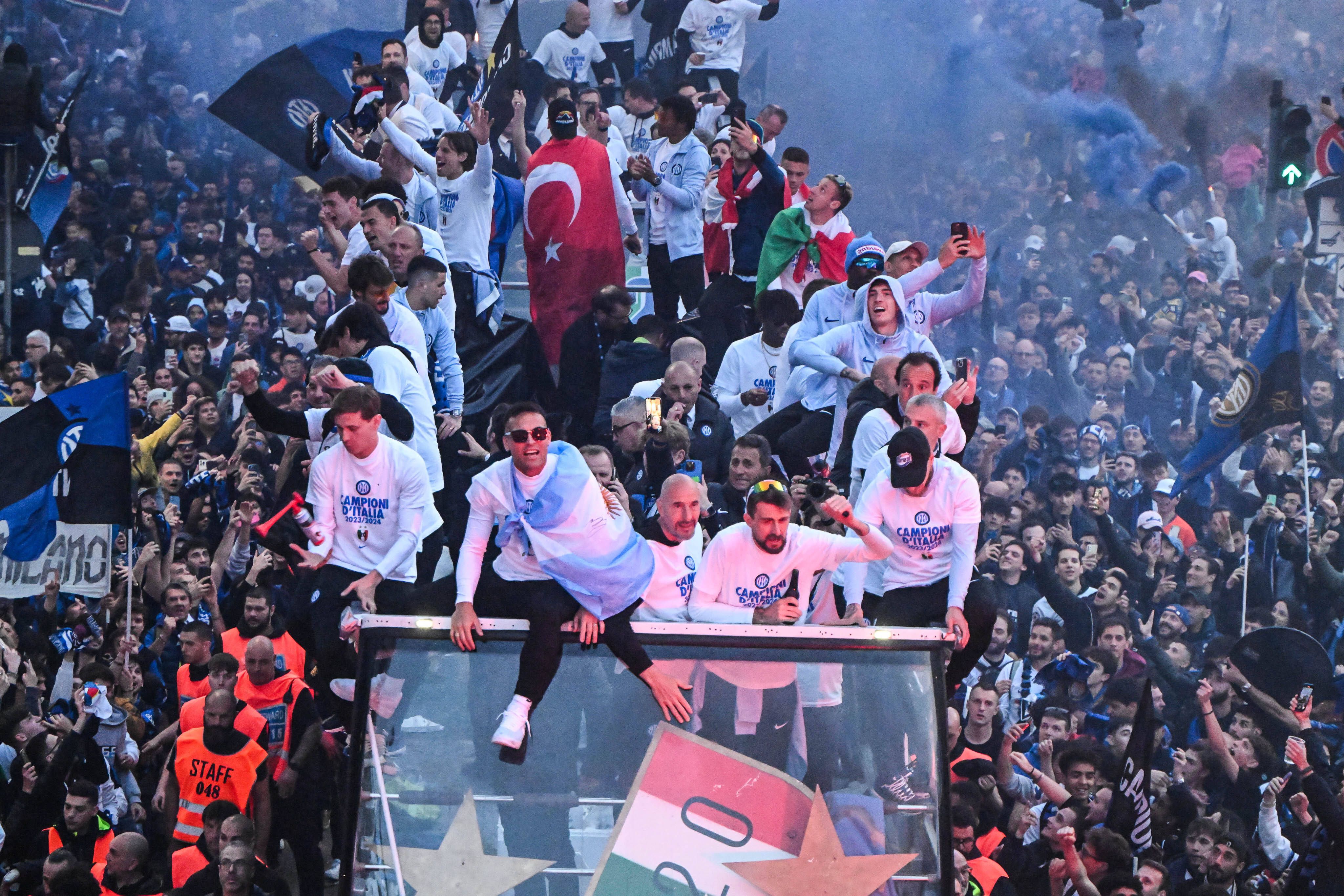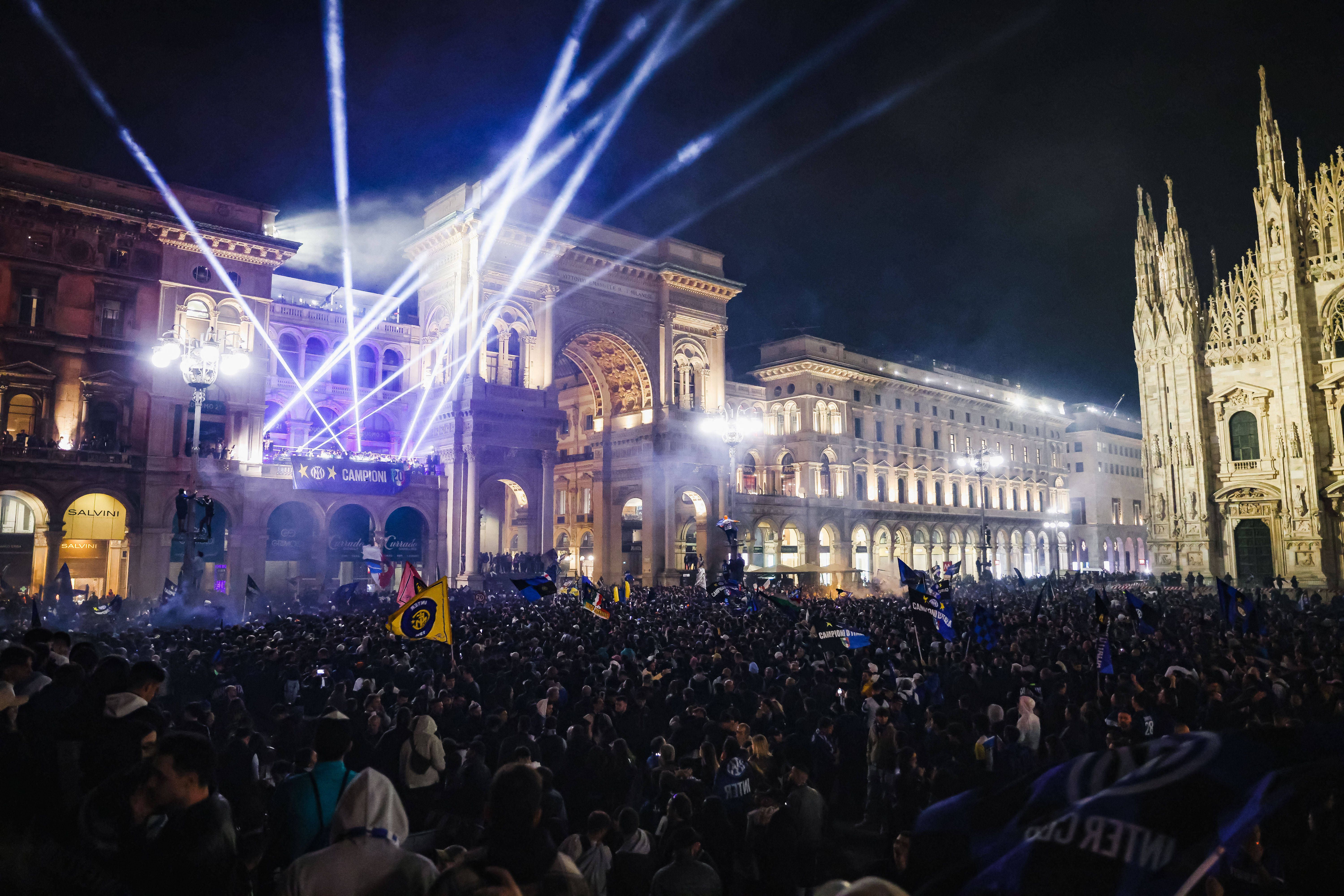 Nas ruas de Milão estiveram mais de 400 mil pessoas, segundo cálculos da imprensa local, para uma festa em que não faltaram provocações ao Milan, do cartaz empunhado por Thuram com nota de euro com o número zero e a cara de Çalhanoglu (que fez os dois golos de ontem), contratado pelo Inter aos rossoneri em final de contrato em 2021, a outro exibido por Denzel Dumfries, que mostrava o próprio defesa holandês a segurar corrente que prendia Theo Hernández, lateral do Milan - os dois jogadores foram expulsos após se envolverem em confrontos no final do dérbi de há uma semana.