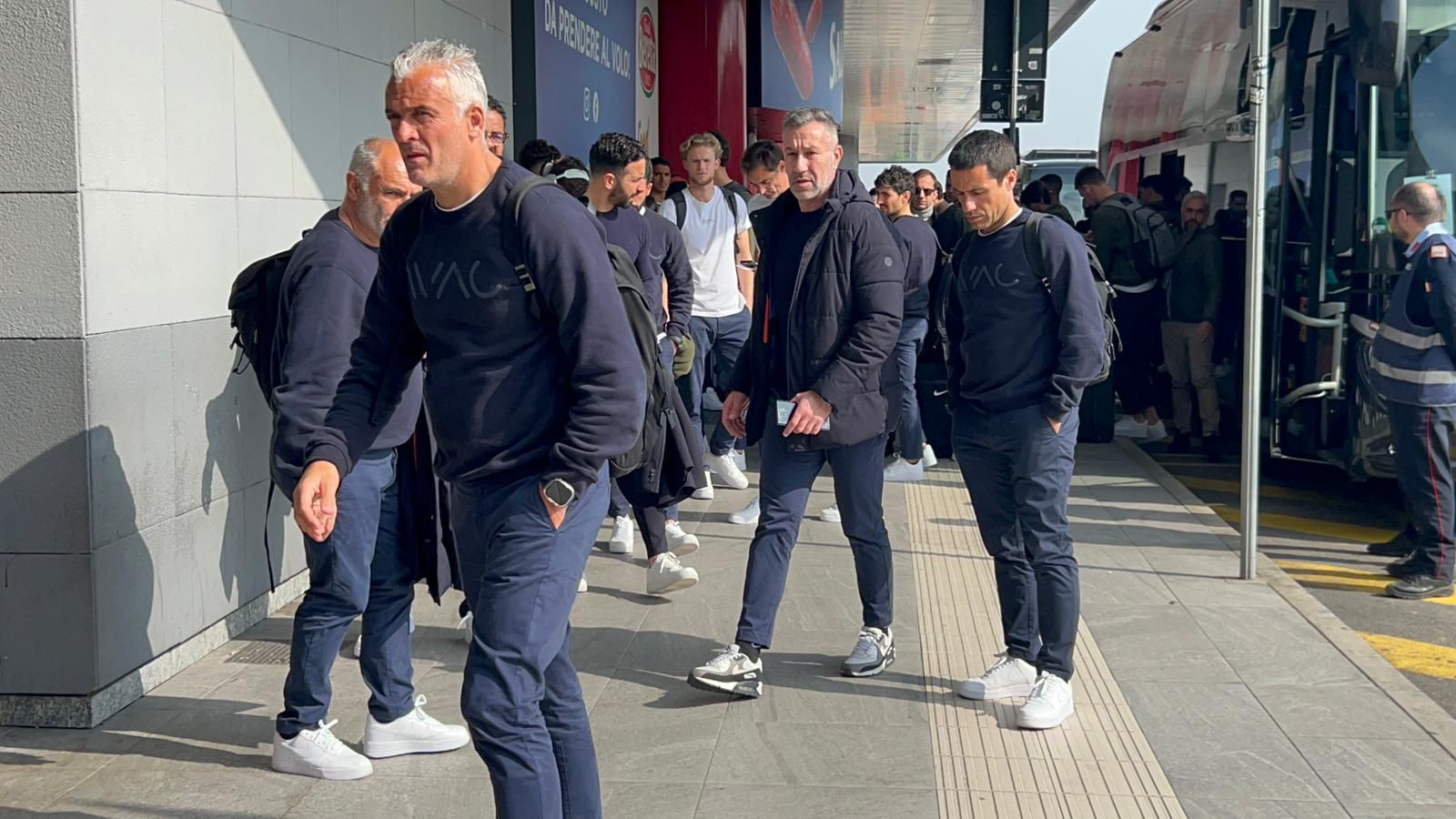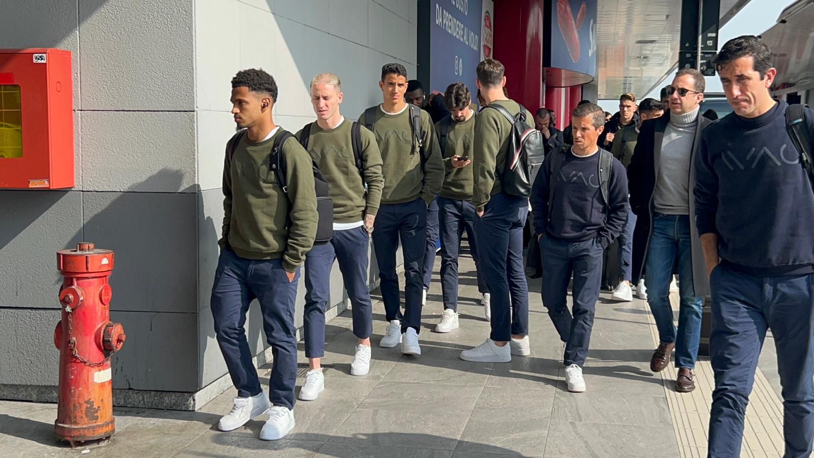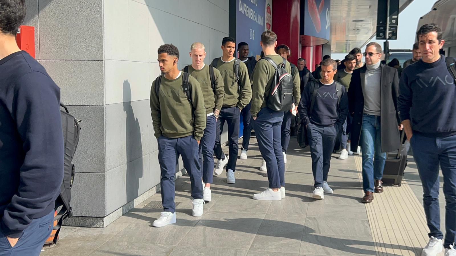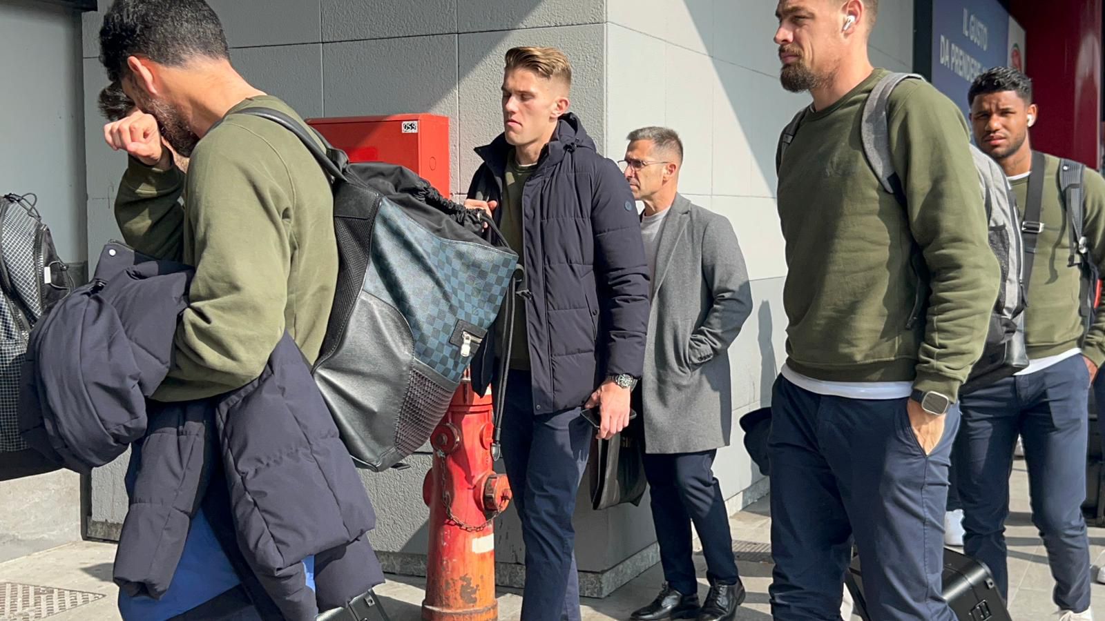 A comitiva leonina chegou ao aeroporto de Bérgamo liderada por Frederico Varandas e por Rúben Amorim. No entanto, muita da atenção recaiu sobre Pedro Gonçalves, após a lesão muscular que sofrera frente à La Dea.