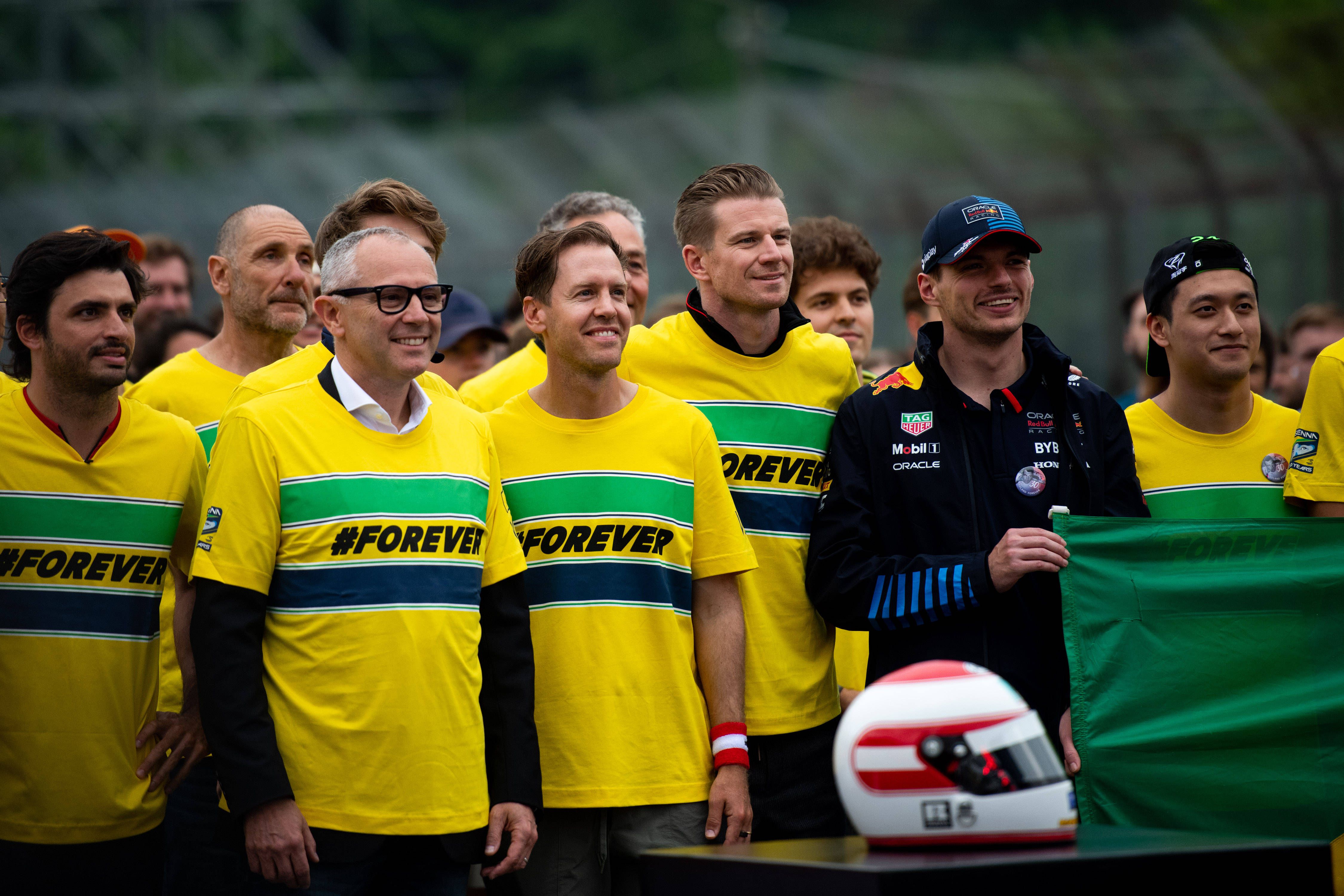 Antes já tinha visitado a estátua de Senna no circuito italiano e prestado homenagens individuais com uma bandeira do Brasil ao pescoço.