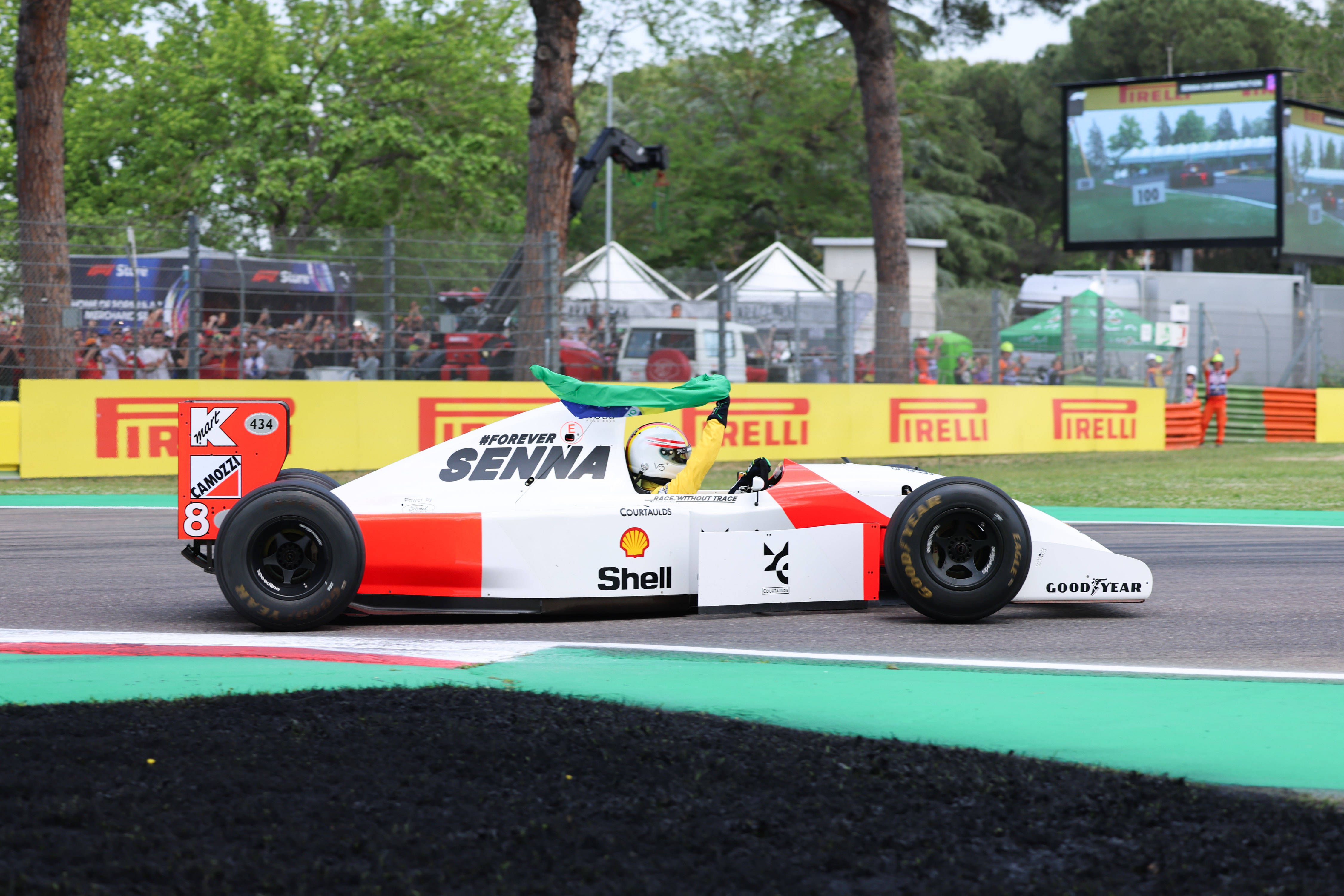 Este foi o seu último carro e a volta, e também alguns piões, serviram como homenagem pela passagem dos 30 anos da morte do brasileiro naquela pista.