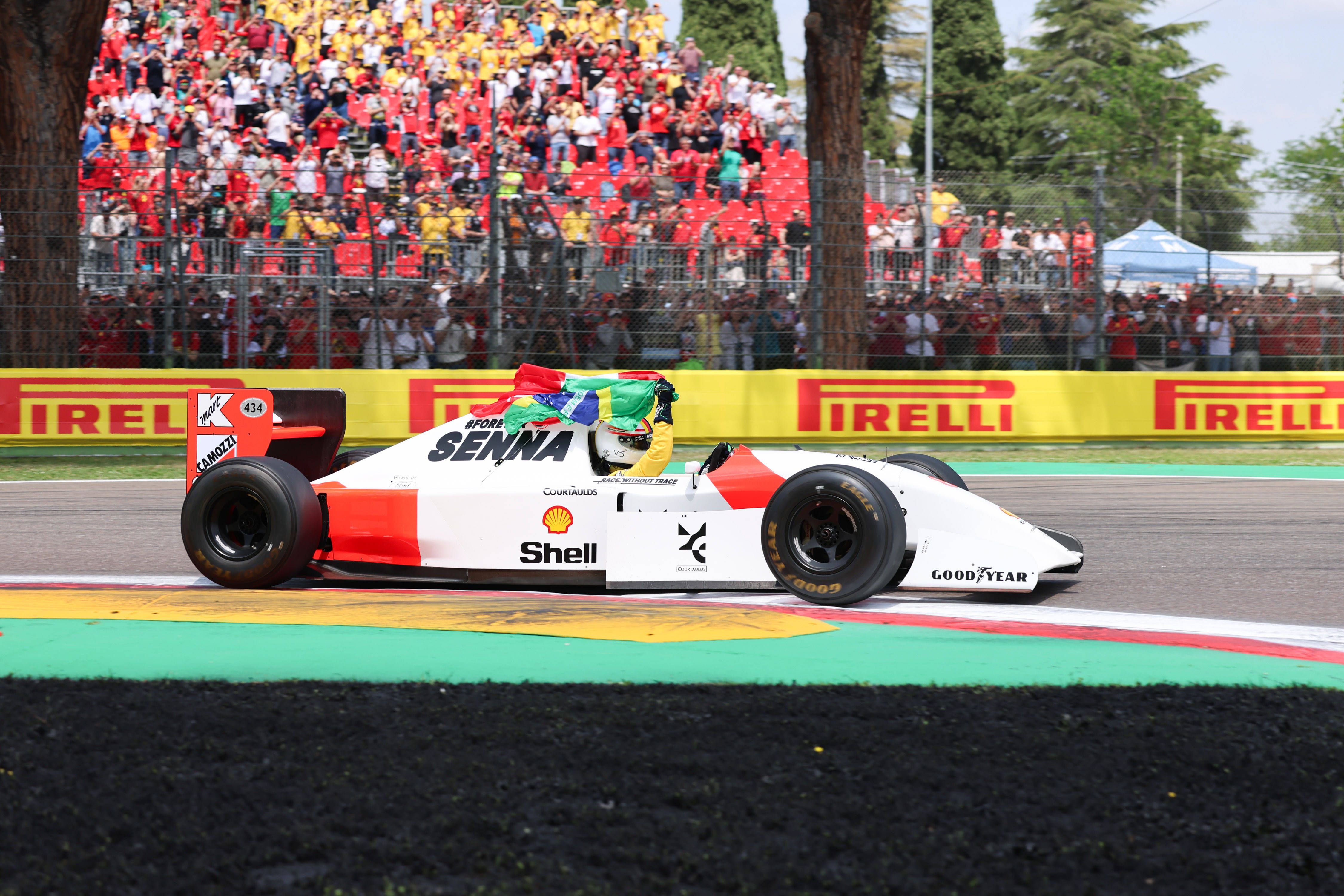Quem foi ao Autódromo Enzo e Dino Ferrari em Imola, este domingo, teve direito a um momento especial: Sebastian Vettel, tetracampeão de Fórmula 1, pilotou pelo circuito o McLaren MP4/8 de 1993 que foi conduzido por Ayrton Senna, usando também o icónico capacete amarelo e verde.