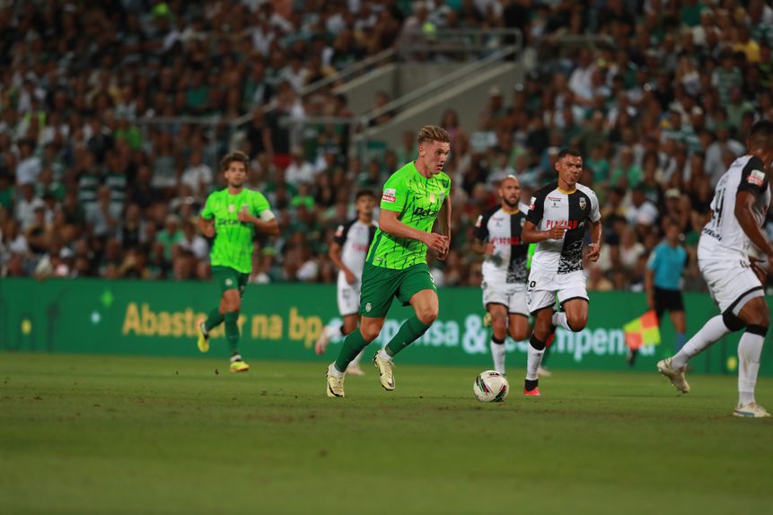 Gyokeres recebe com espaço a meio do meio-campo ofensivo, Marco Moreno já tem amarelo e não pode arriscar falta… dá espaço ao sueco que de pé esquerdo faz o terceiro do Sporting, hat-trick do goleador leonino aos 66'.