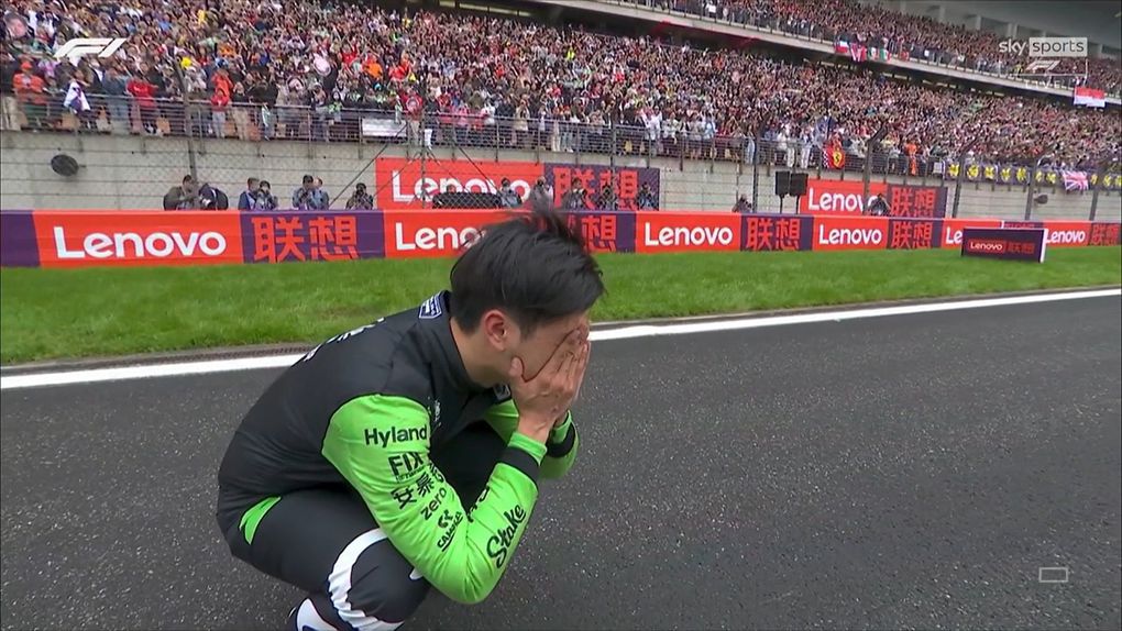 A correr em casa, o chinês Guanyu Zhou, que acabou em 14.º, teve direito a estacionar na reta da meta no final do GP da China, atrás dos carros de pódio, e emocionou-se após esta sua primeira corrida de F1 em solo chinês.