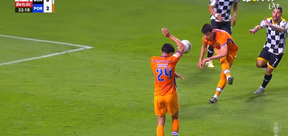 Aos 34', Miguel Reisinho reduziu distâncias para o Boavista no dérbi com o FC Porto, para 1-2, aproveitando uma grande penalidade absolutamente surreal e para o anedotário do futebol português. Dentro da grande área, Zé Pedro tentou o alívio longo, mas a bola acabou por acertar em cheio no braço direito do argentino Nehuén Pérez, que estava levantado...